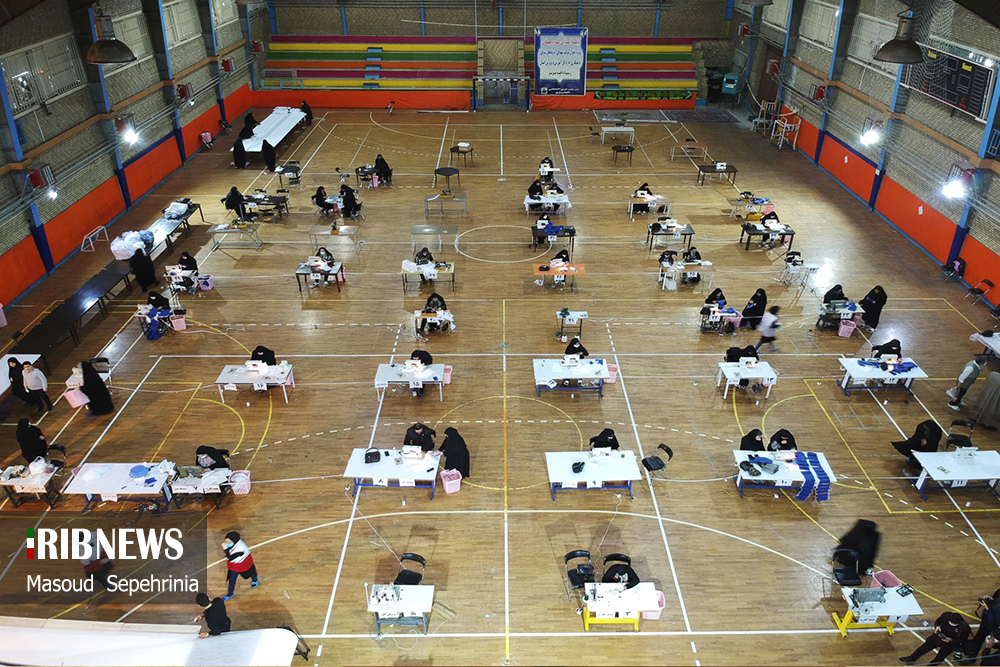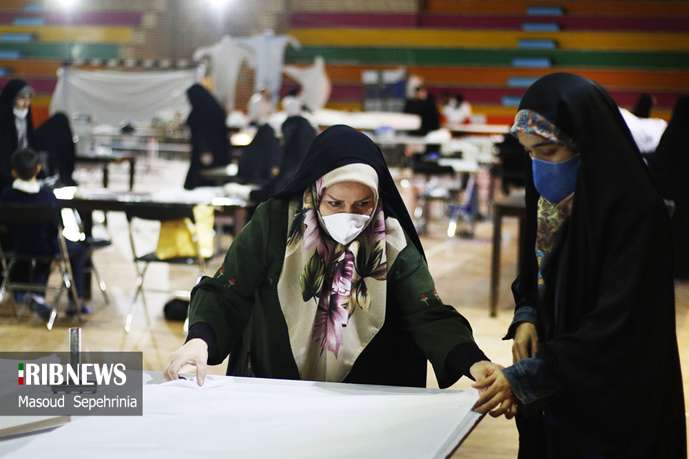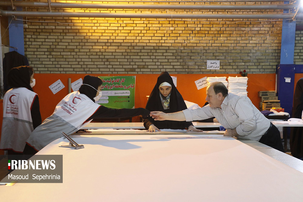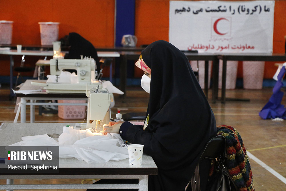 به همت پایگاه بسیج موکب شهدای آذربایجان شرقی و تلاش بانوان جهادگر برای تولید ماسک، لباس و ملحفه ایزوله بیمارستانی مشغول به خدمت هستند. در این واحد روزانه ۱۰ هزار ماسک و ۵۰۰ ملحفه برای بیمارستانهای تبریز آماده میشود.