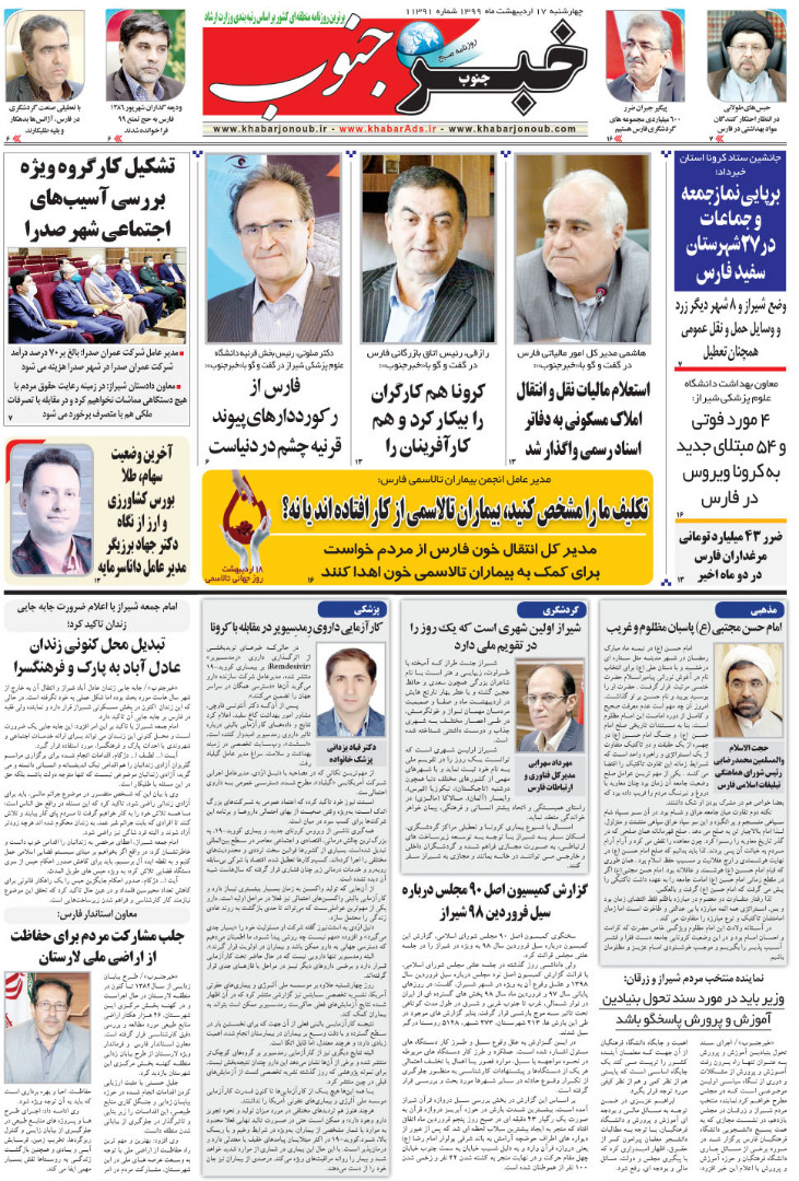 صفحه نخست برخی روزنامه‌های فارس ۱۷ اردیبهشت