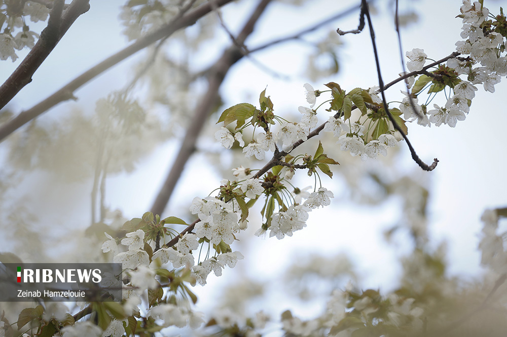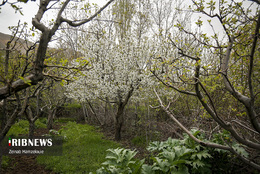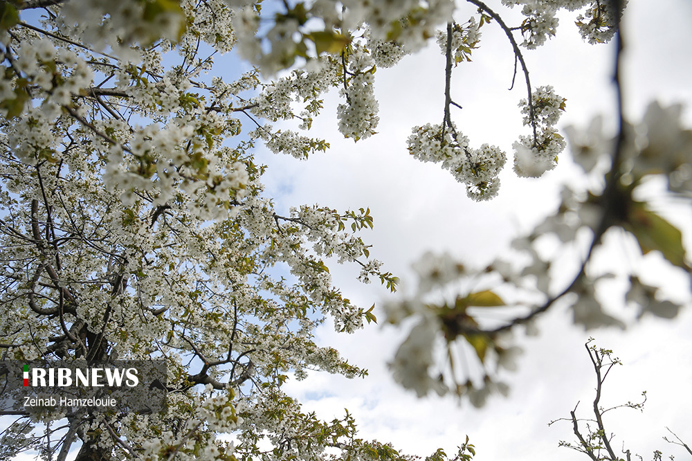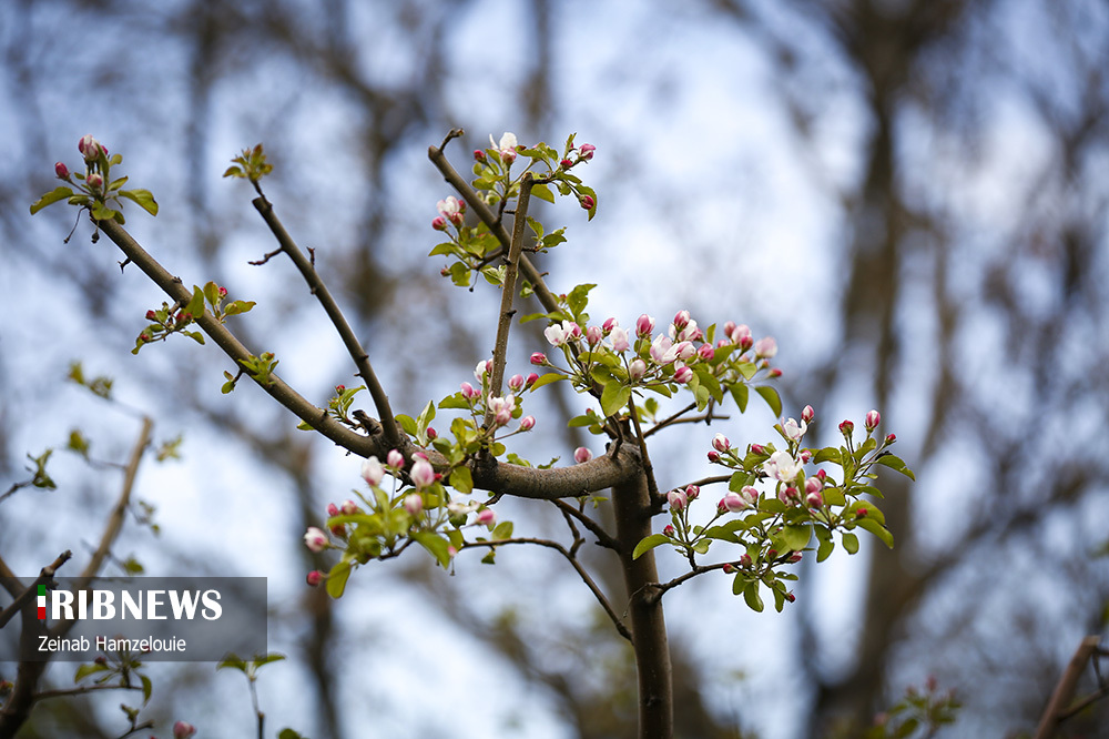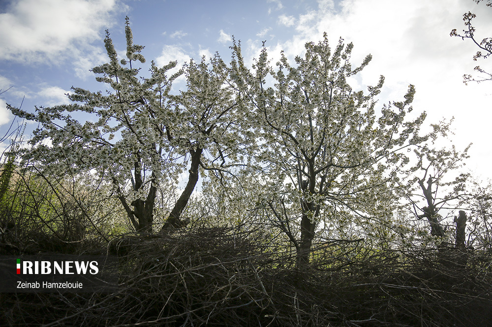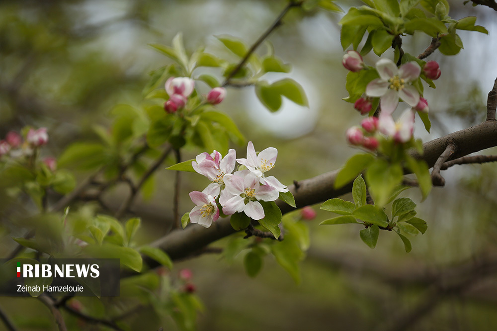 شکوفه‌های بهاری درختان سیب و گیلاس در اردیبهشت ماه شهرستان دماوند نوید سالی پر بار را می‌دهند