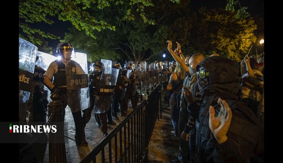 در واشنگتن، برای دومین شب متوالی، معترضان مقابل کاخ سفید با نیروهای امنیتی رو در رو شدند.