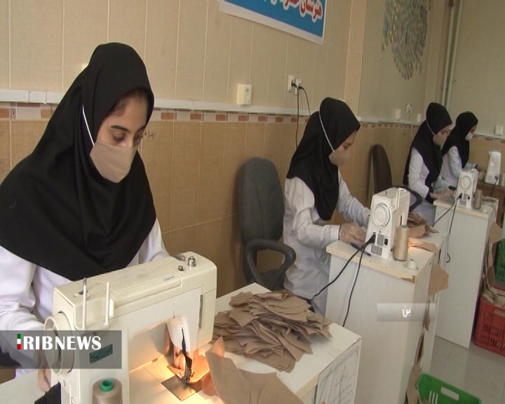 دانش آموزان هنرستان الزهرای شهرستان بن ۲۰ هزار ماسک بهداشتی تولید کردند.