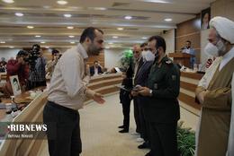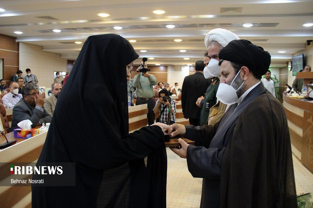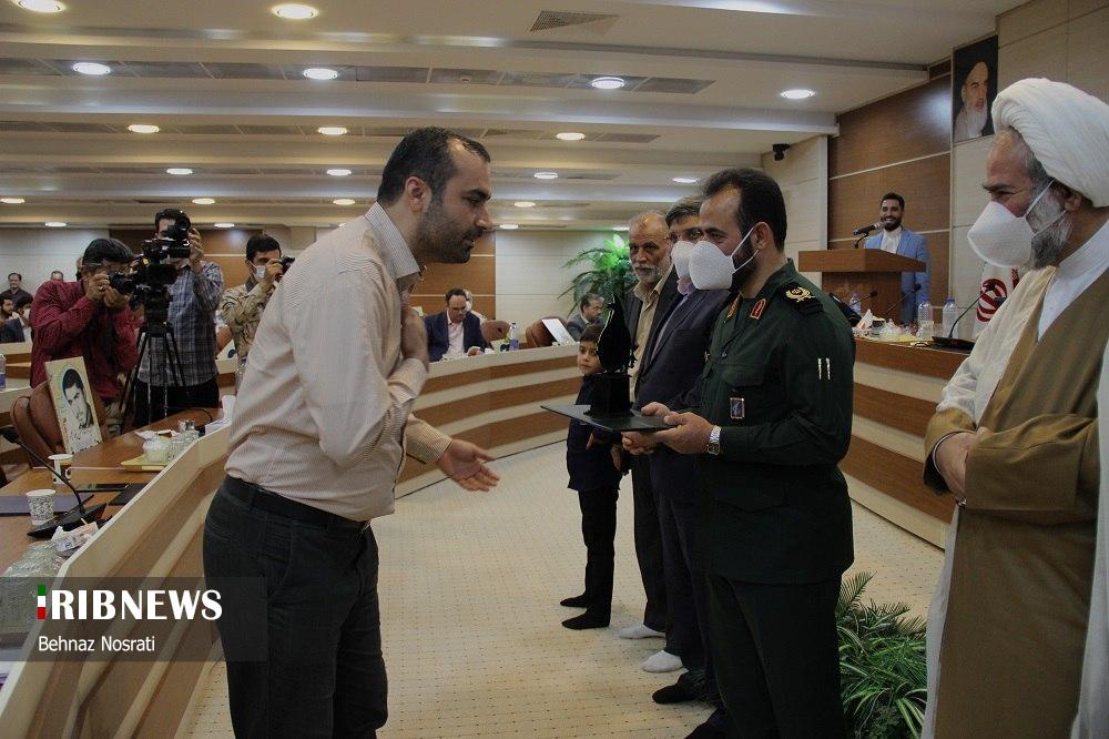 در این مراسم از خانواده شهید علی اکبر ناظری پور اولین شهید مدافع سلامت استان سمنان که در چهاردهم فروردین امسال در راه مراقبت از بیماران مبتلا به کرونا به شهادت رسید، قدردانی شد.