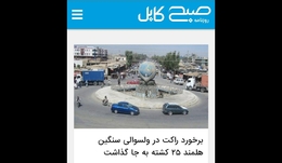 // روزنامه «صبح کابل» - اصابت راکت به شهرستان «سنگین» استان هلمند ۲۵ کشته برجای گذاشت.