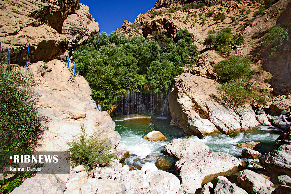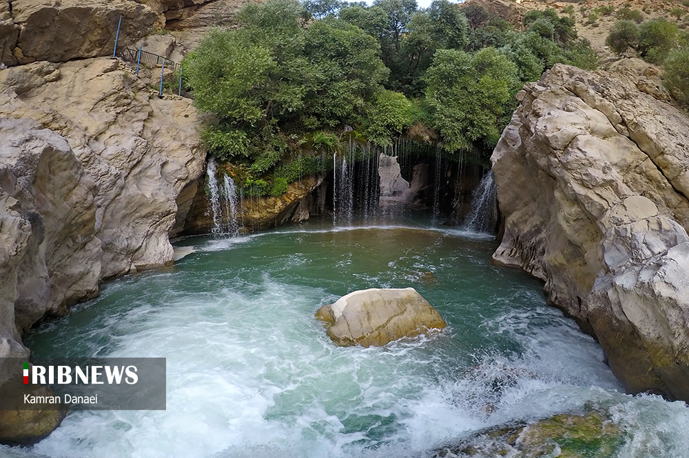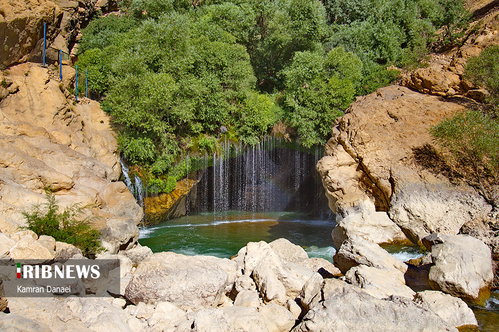 به گزارش گروه عکس خبرگزاری صدا وسیما ؛ این آبشار نیز به نام تخت سلیمان نیز معروف است. وجه تسمیه این منطقه به دلیل قطعه سنگ بزرگ و طبیعی است که به مانند یک پل بر روی رودخانه آب ملخ قرار گرفته است و دو دره را به یکدیگر متصل میکند.در محل تخت سلیمان، طی یک پدیده نادر طبیعی، آب رودخانه ماربر برای مدتی ناپدید شده و سپس کمی جلوتر در بستر خود هویدا میشود.پشت آبشار پرتگاه خطرناک و زیبایی وجود دارد که آب ملخ را به یکی از خطرناکترین آبشارهای ایران تبدیل کرده است. بهترین زمان بازدید از آبشار آب ملخ فصلهای بهار و تابستان است.