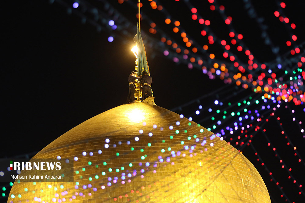 همزمان با شب میلاد امام علی بن موسی الرضا(ع) آیین تعویض پرچم گنبد منوررضوی برگزار شد.