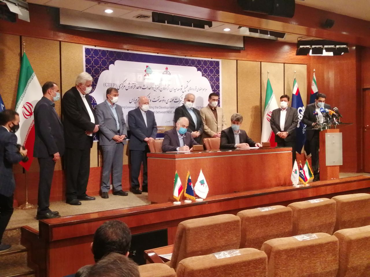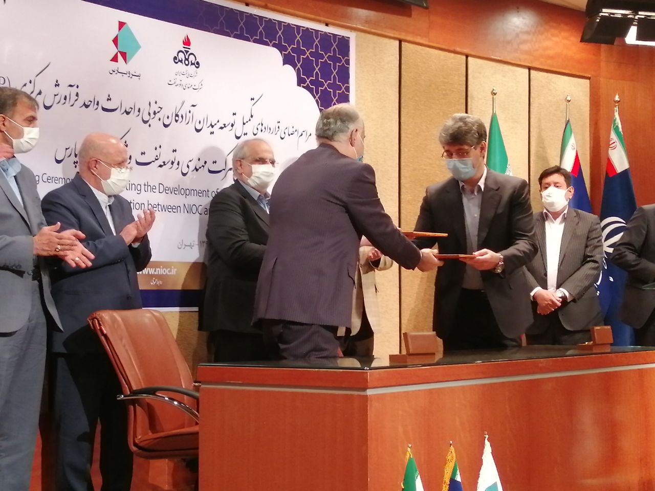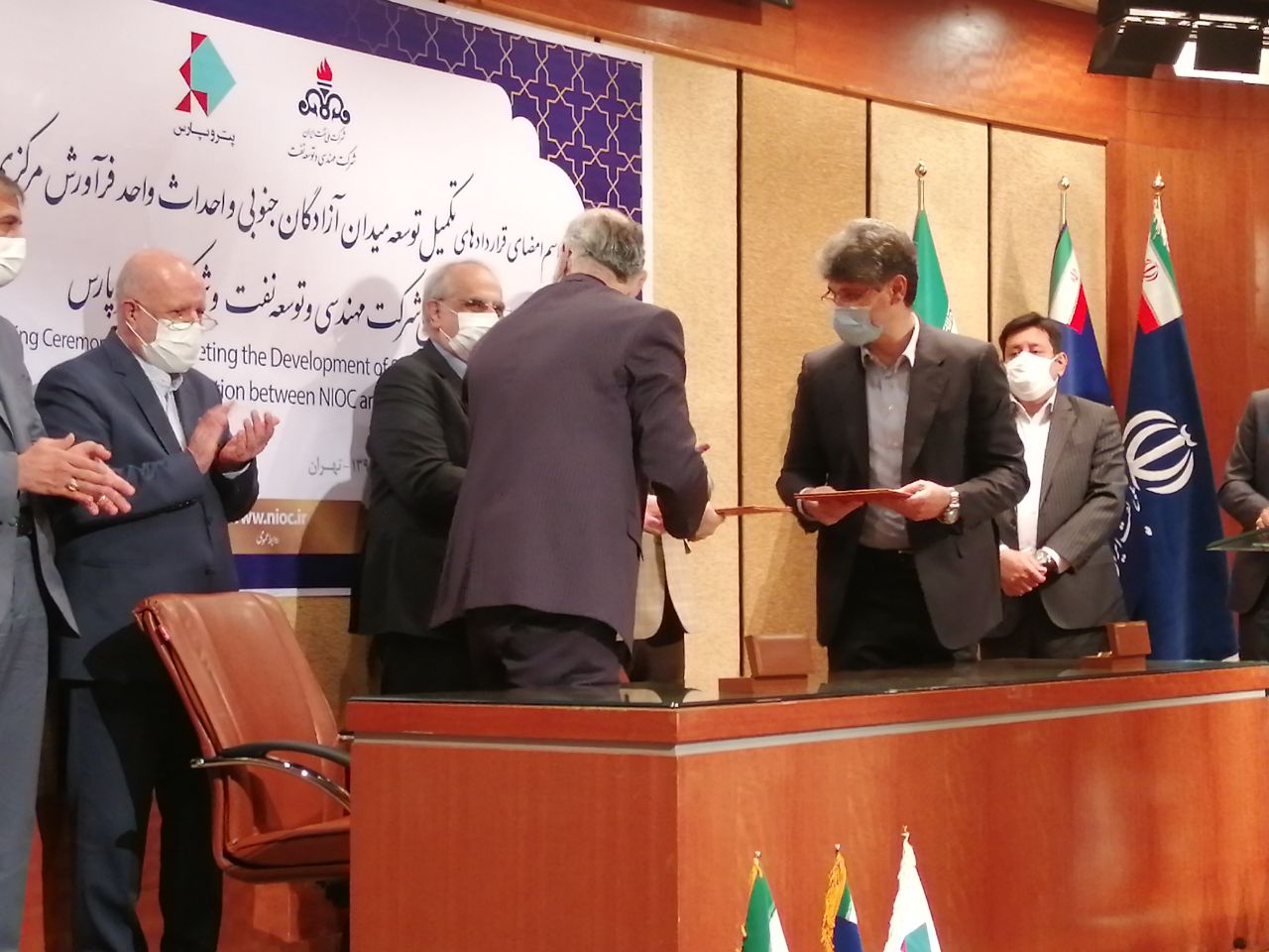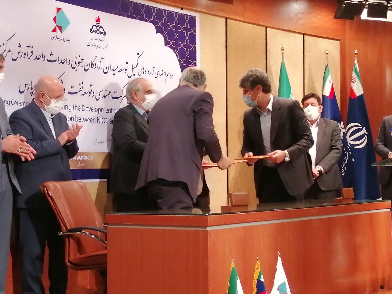 قرارداد تکمیل توسعه میدان آزادگان جنوبی با حضور بیژن نامدار زنگنه وزیر نفت و مسعود کرباسیان مدیرعامل شرکت ملی نفت ایران بین تورج دهقانی مدیرعامل شرکت مهندسی و توسعه نفت (متن) به عنوان کارفرما با حمیدرضا مسعودی مدیرعامل شرکت پتروپارس به عنوان پیمانکار عمومی و مجری طرح به امضا رسید.