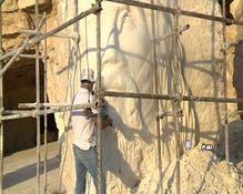 هنرمند جهرمی با پیکرتراشی در غار سنگ شکنان جهرم تندیس های متفاوت و زیبایی را خلق کرده است