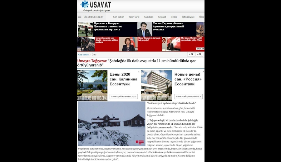 - برای نخستین بار در "شاه داغ" جمهوری آذربایجان در ماه آوگوست به ارتفاع ۱۱ سانتی متر برف بارید.