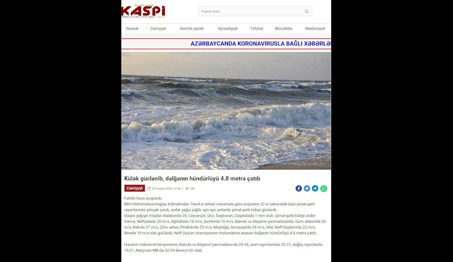 - در پی وزش شدید باد ارتفاع امواج دریای خزر به ۴ متر و ۸۰ سانتی متر رسید.