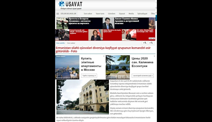 - وزارت دفاع جمهوری آذربایجان از به اسارت گرفتن فرمانده گروه شناسایی ارتش ارمنستان در منطقه مرزی "گوران بوی" خبر داد.