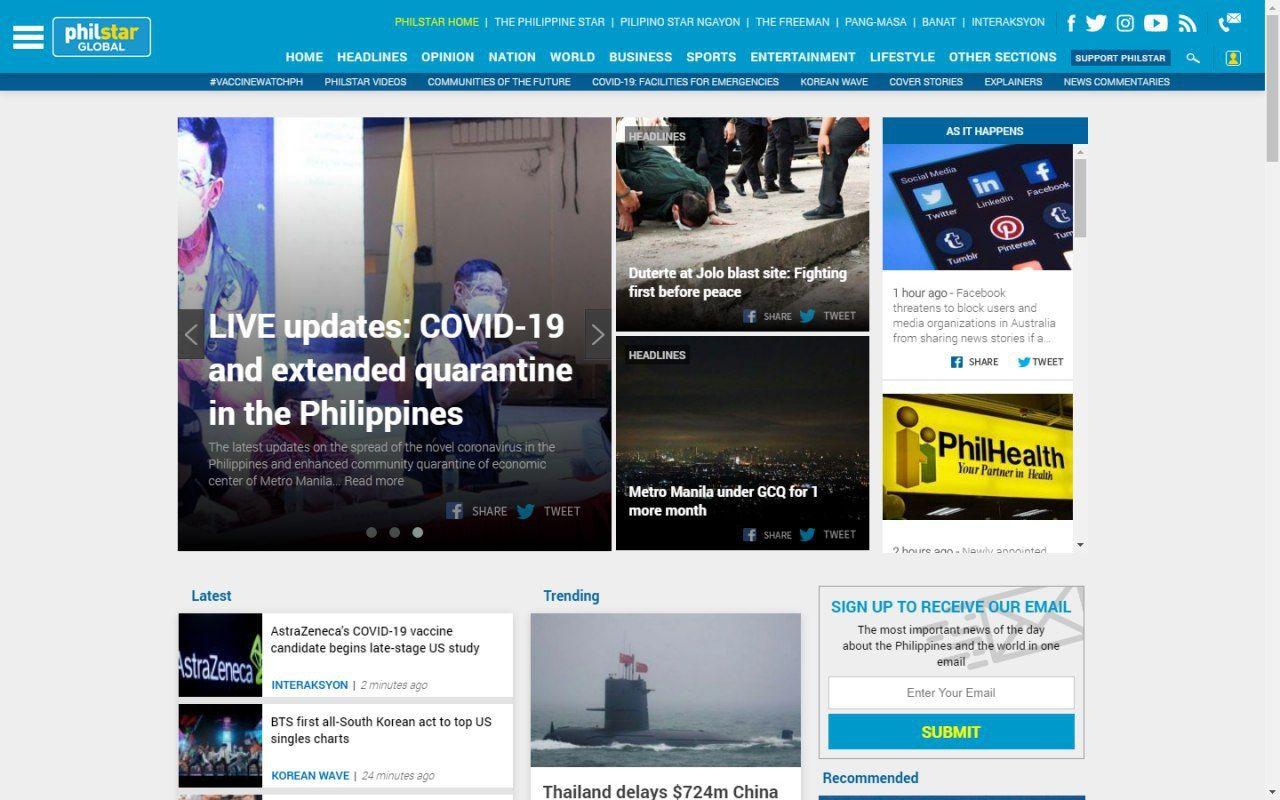 - رئیس جمهور فیلیپین به علت جهش صعودی آمار مبتلایان به کرونا، قرنطینه و محدودیتهای مانیل، پایتخت فیلیپین را تا یک ماه دیگر تمدید کرد.