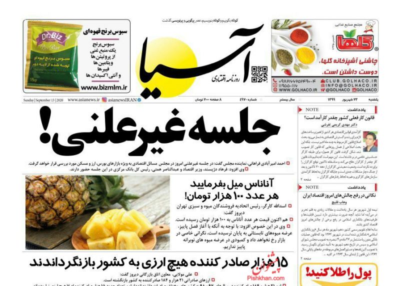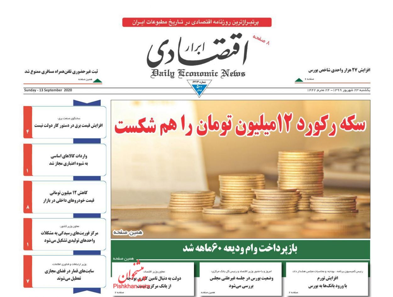 به گزارش گروه اقتصادی خبرگزاری صدا و سیما؛ صفحه نخست برخی روزنامههای اقتصادی امروز یکشنبه، ۲۳ شهریور ۹۹ به شرح زیر است: