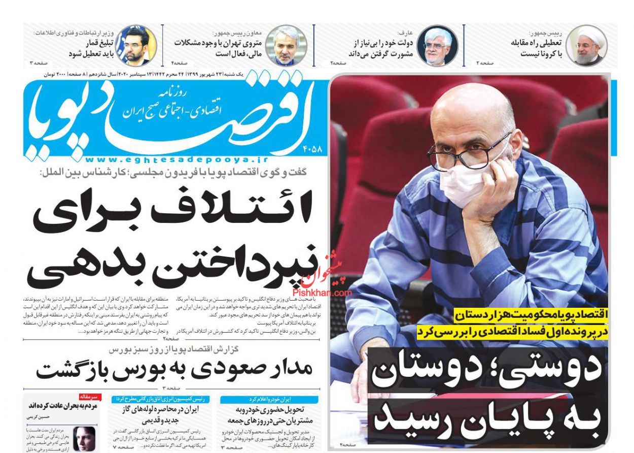 صفحه نخست روزنامههای اقتصادی امروز یکشنبه، ۲۳ شهریور ۹۹ را در خبرگزاری صدا و سیما دنبال کنید.