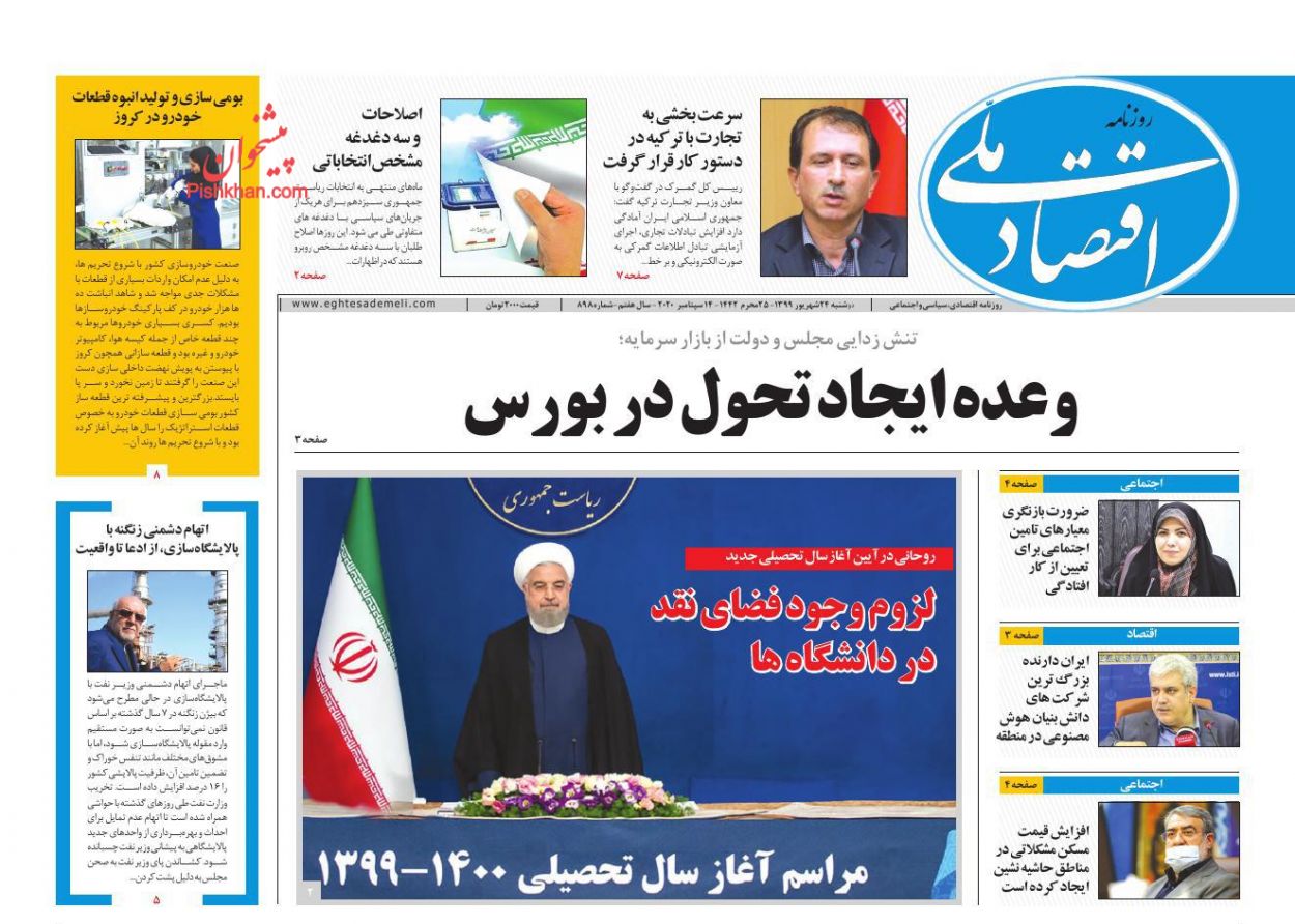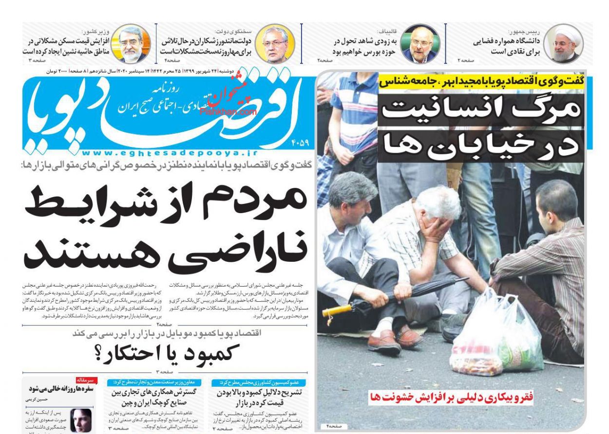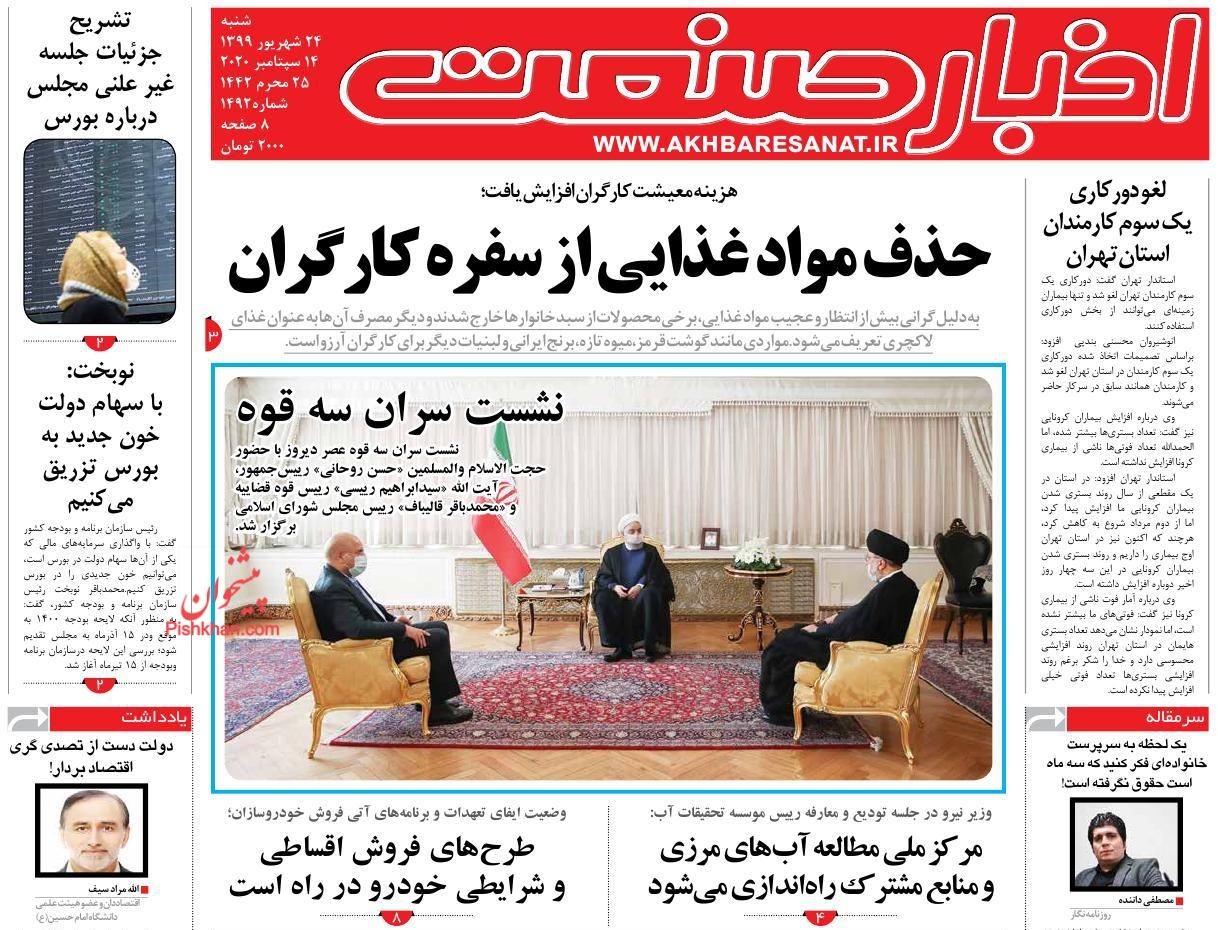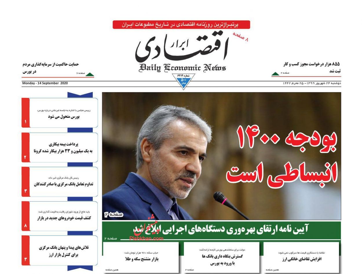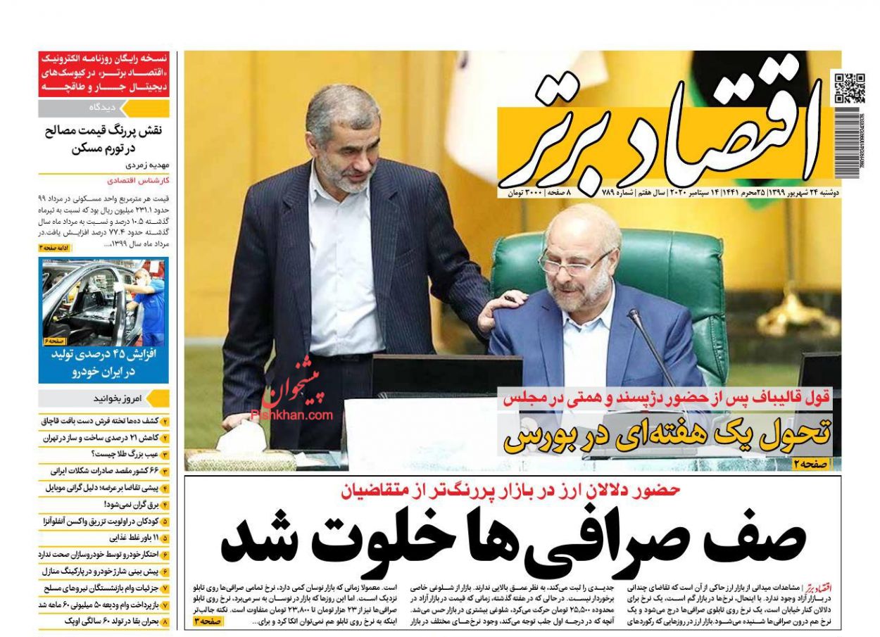 به گزارش گروه اقتصادی خبرگزاری صدا و سیما؛ صفحه نخست برخی روزنامههای اقتصادی امروز دوشنبه، ۲۴ شهریور ۹۹ به شرح زیر است: