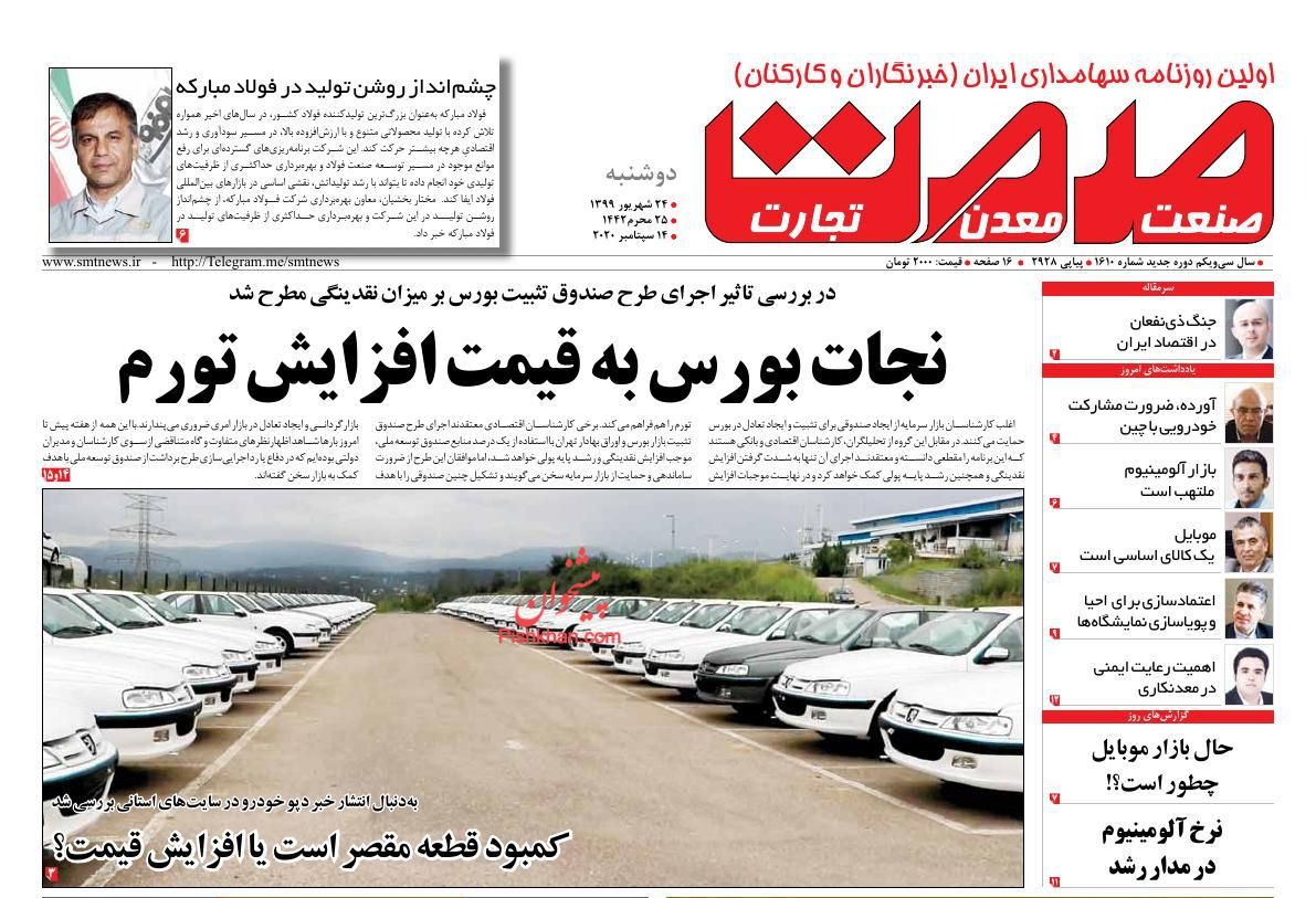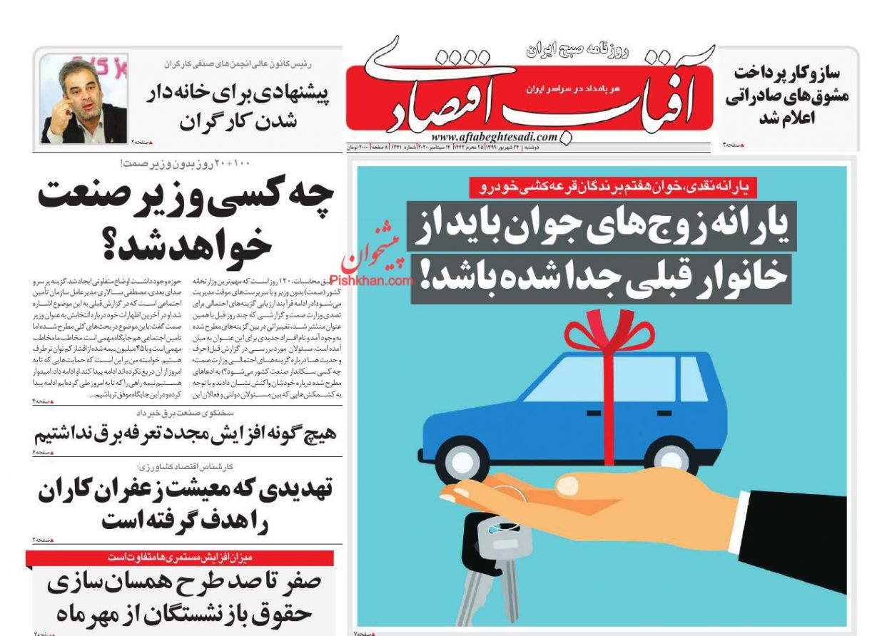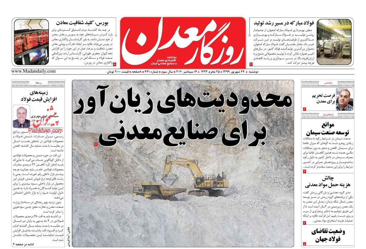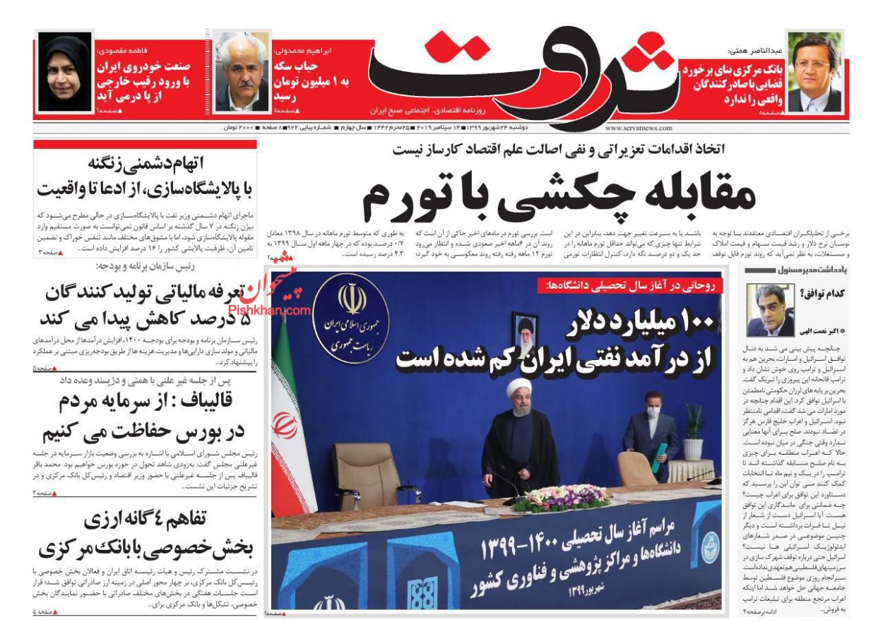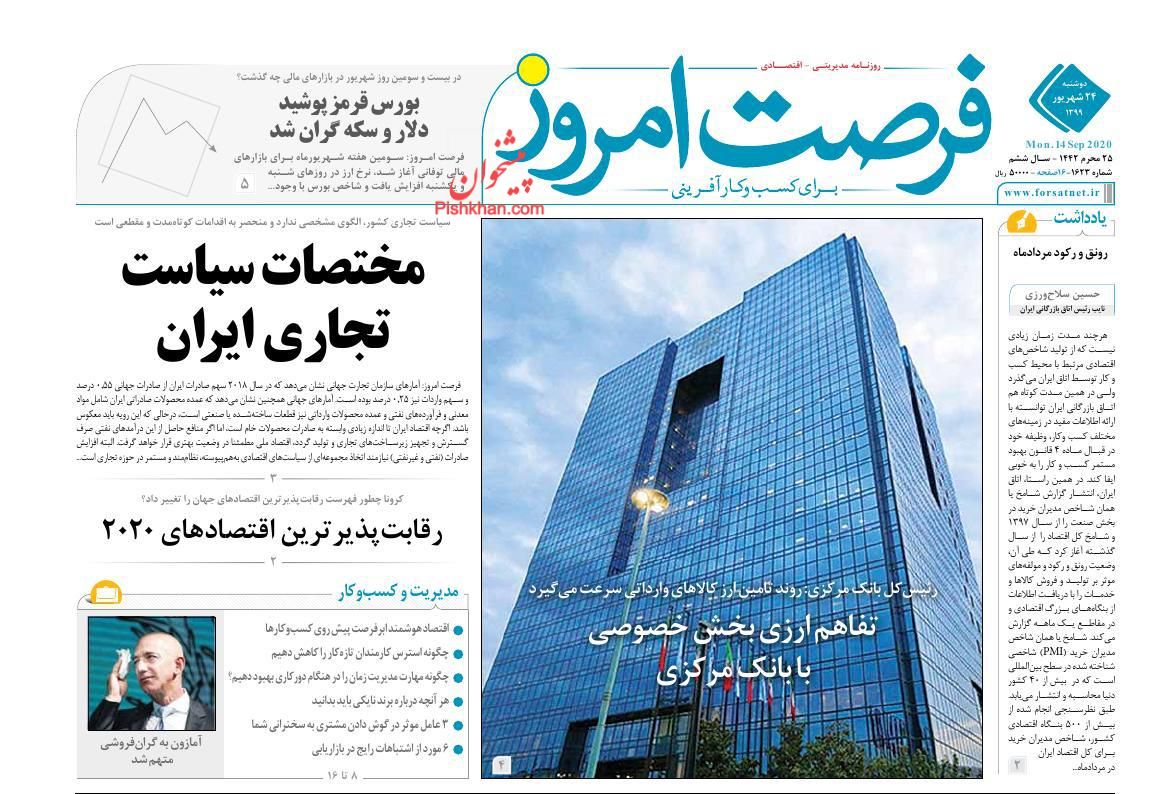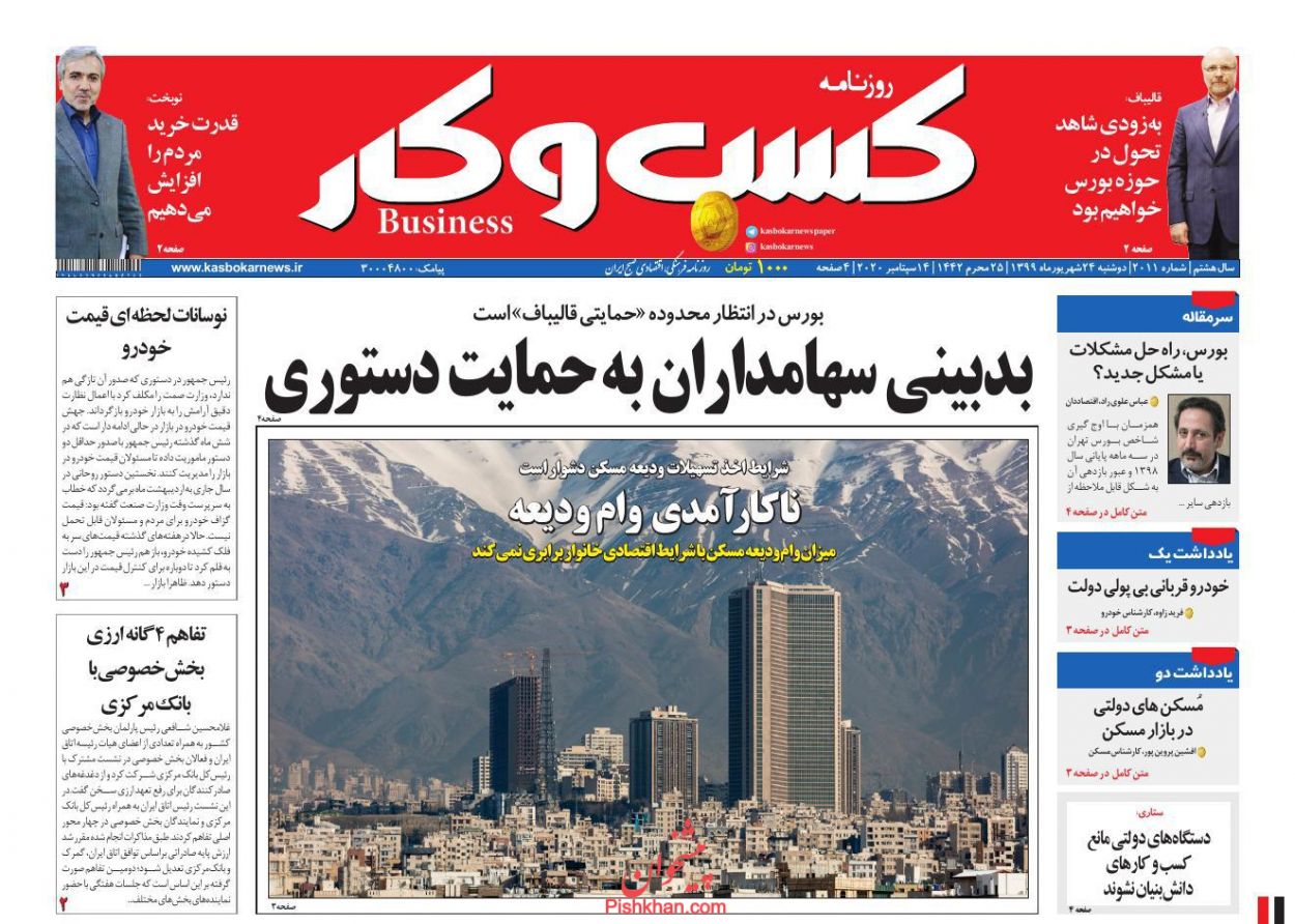 به گزارش گروه اقتصادی خبرگزاری صدا و سیما؛ صفحه نخست برخی روزنامههای اقتصادی امروز دوشنبه، ۲۴ شهریور ۹۹ به شرح زیر است: