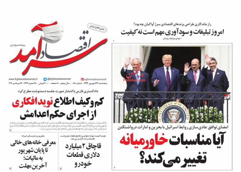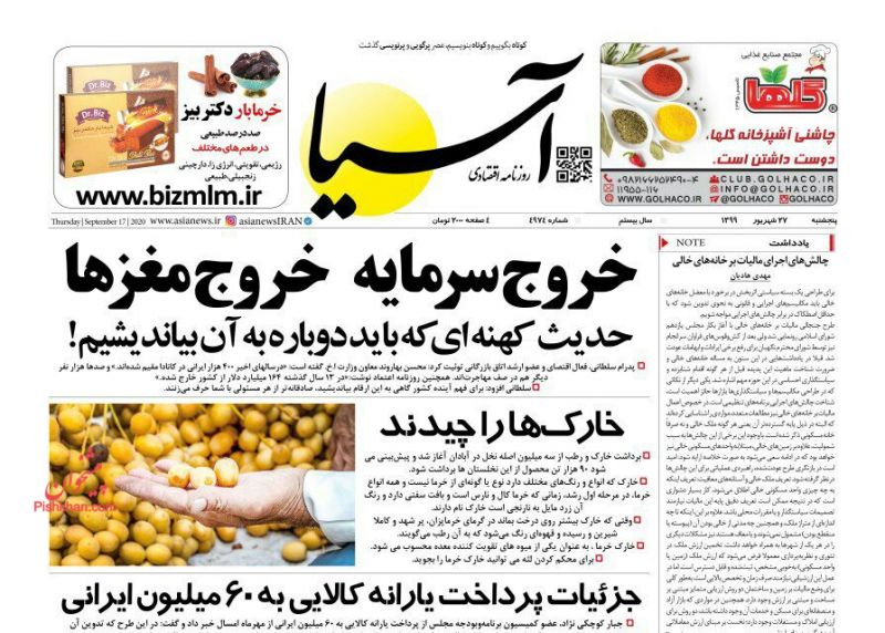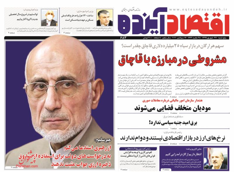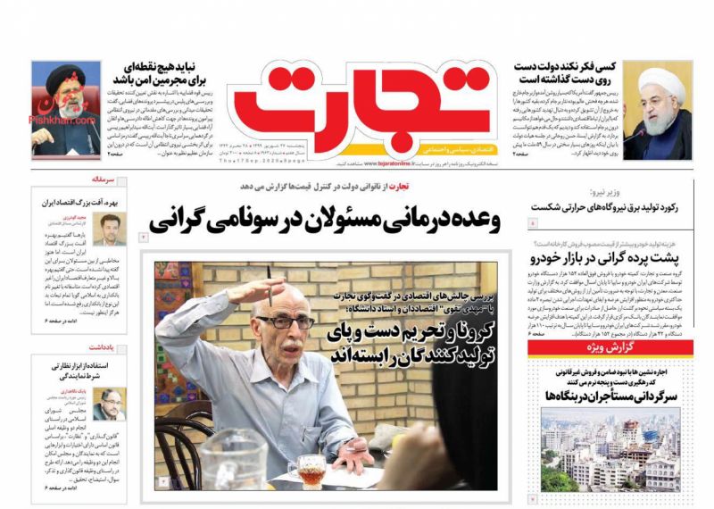 به گزارش گروه اقتصادی خبرگزاری صدا و سیما؛ صفحه نخست برخی روزنامههای اقتصادی امروز پنجشنبه ، ۲۷ شهریور ۹۹ به شرح زیر است: