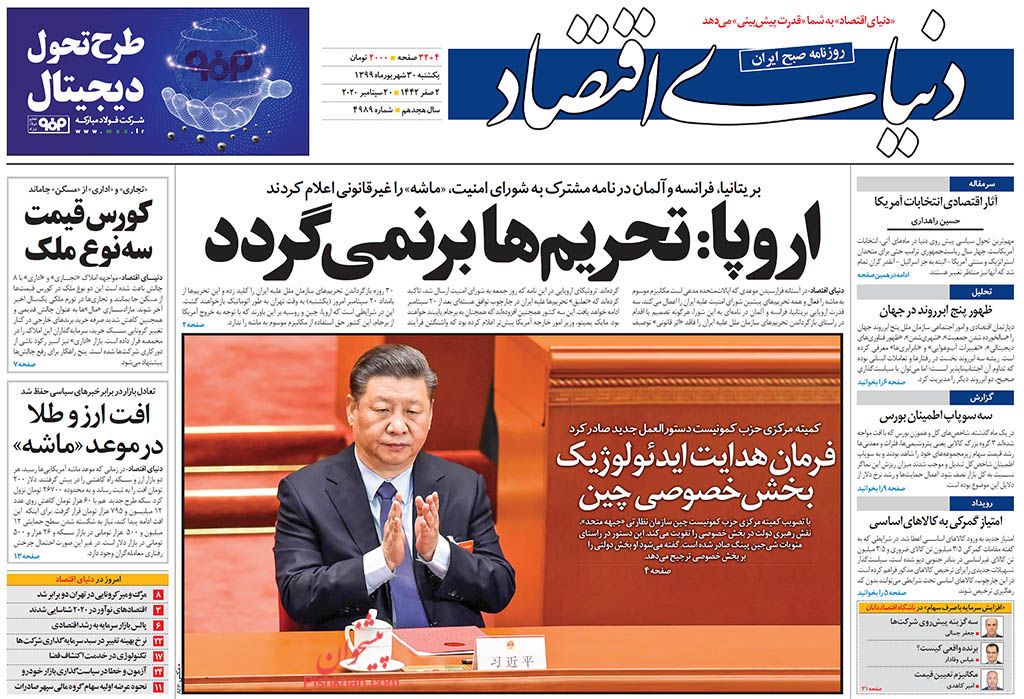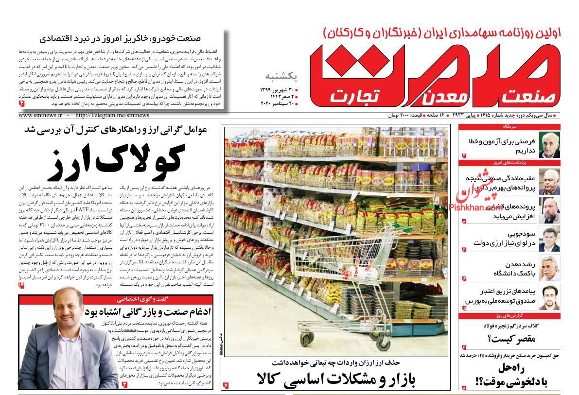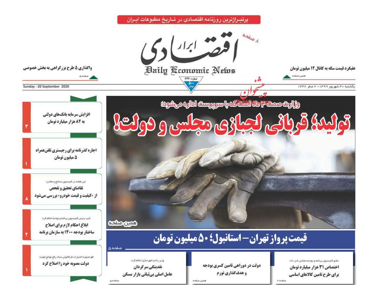 به گزارش گروه اقتصادی خبرگزاری صدا و سیما؛ صفحه نخست برخی روزنامههای اقتصادی امروز یکشنبه، ۳۰ شهریور ۹۹ به شرح زیر است: