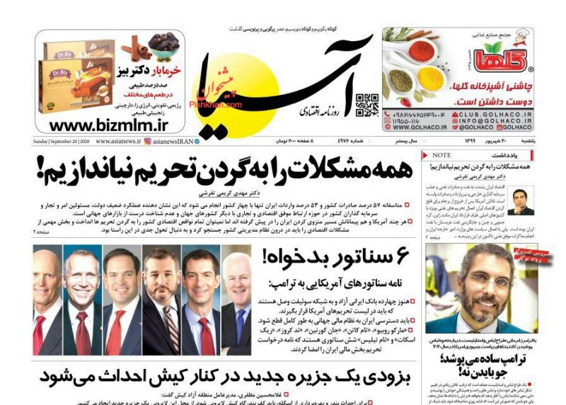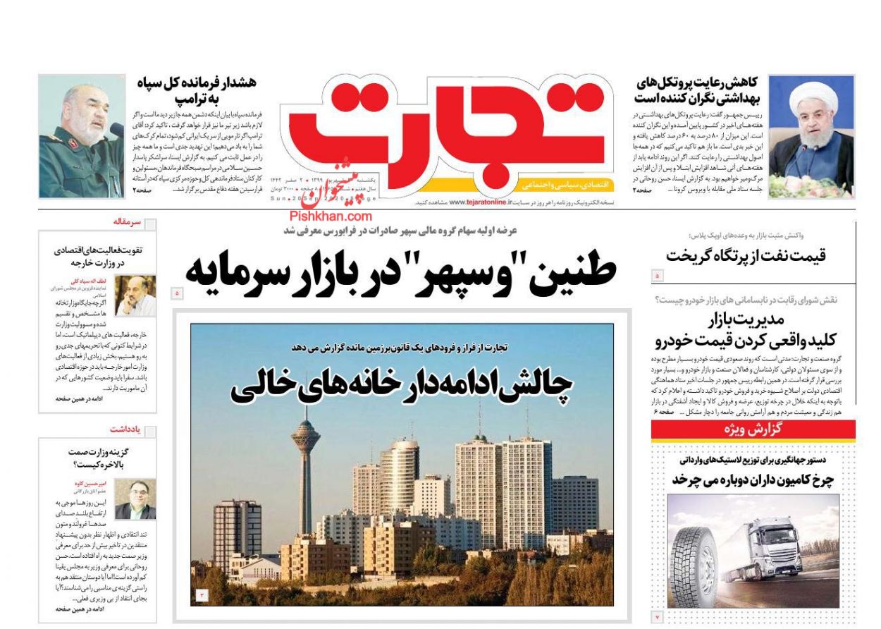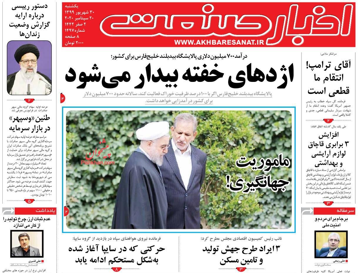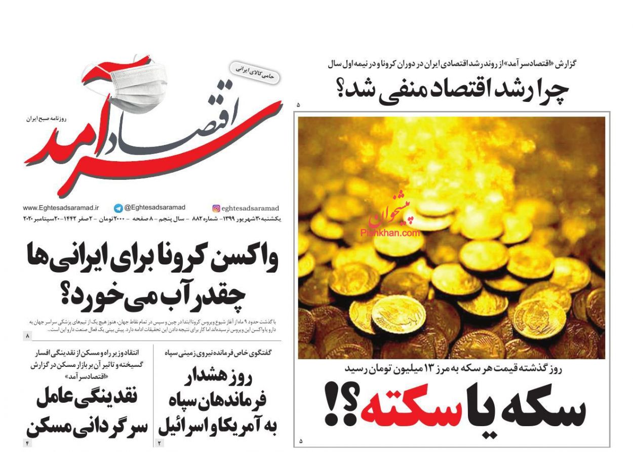 به گزارش گروه اقتصادی خبرگزاری صدا و سیما؛ صفحه نخست برخی روزنامههای اقتصادی امروز یکشنبه، ۳۰ شهریور ۹۹ به شرح زیر است: