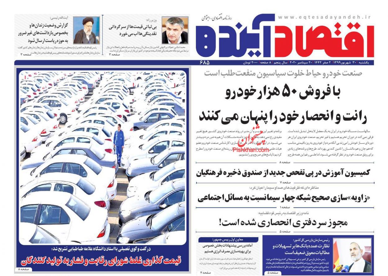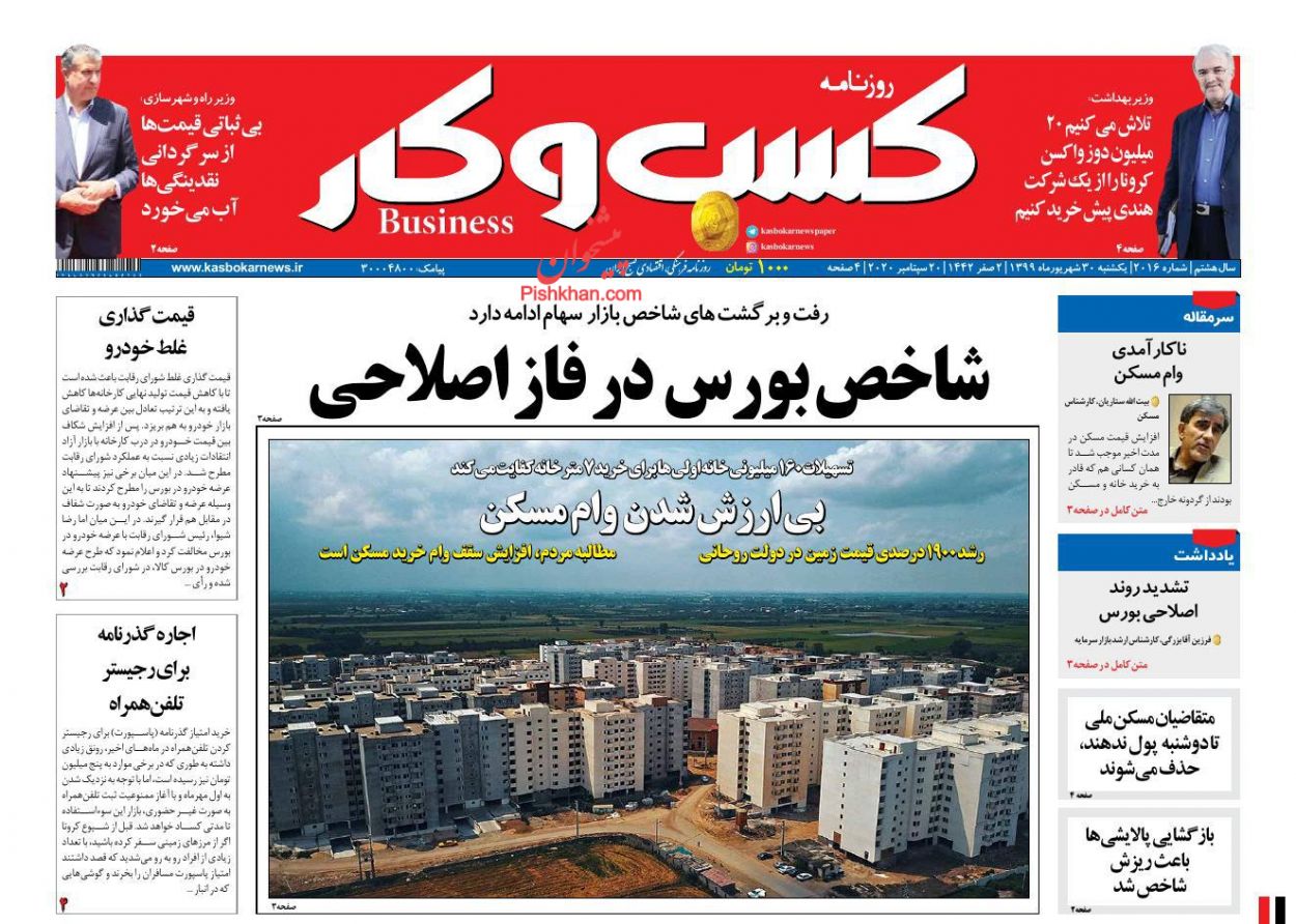 صفحه نخست روزنامههای اقتصادی امروز یکشنبه، ۳۰ شهریور ۹۹ را در خبرگزاری صدا و سیما دنبال کنید.