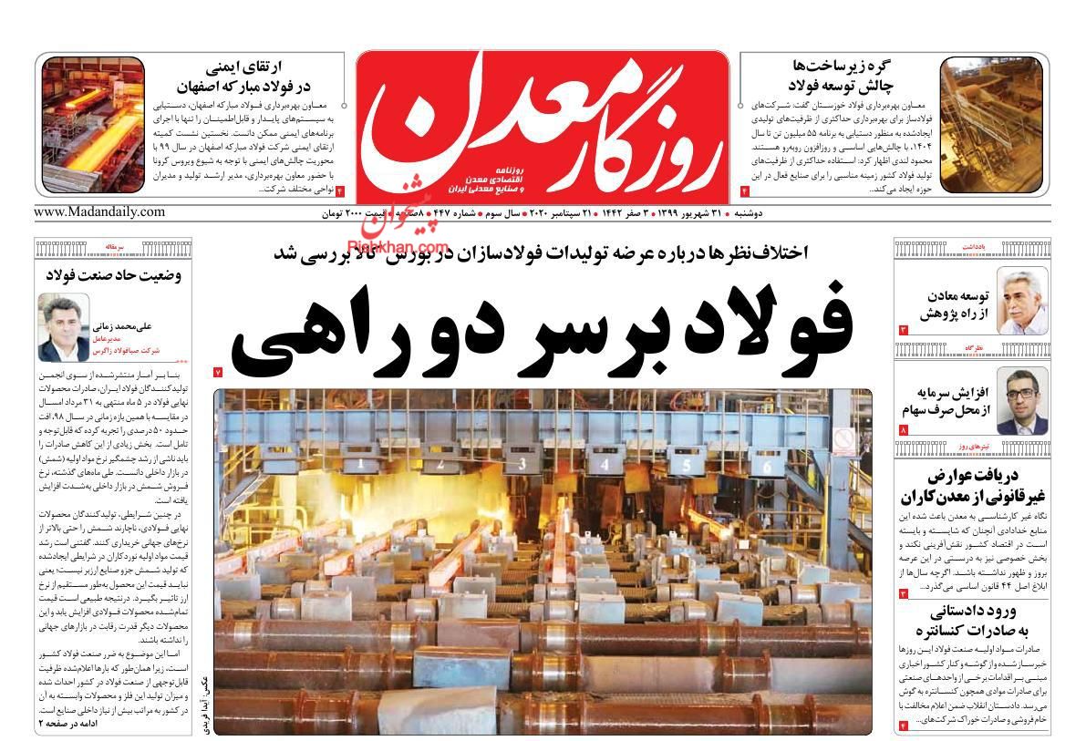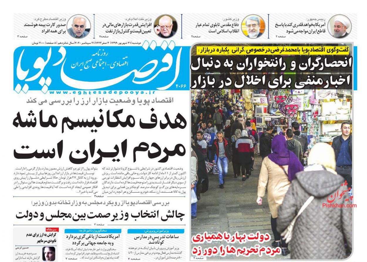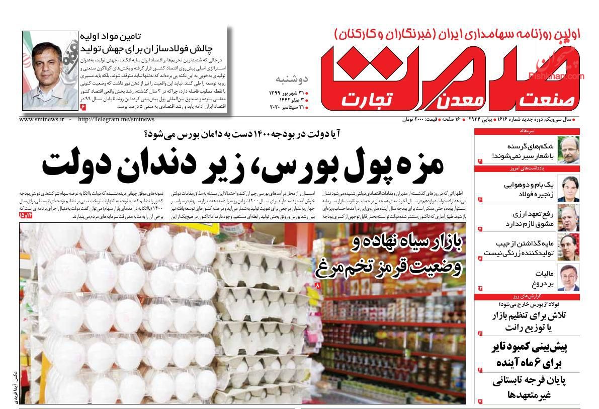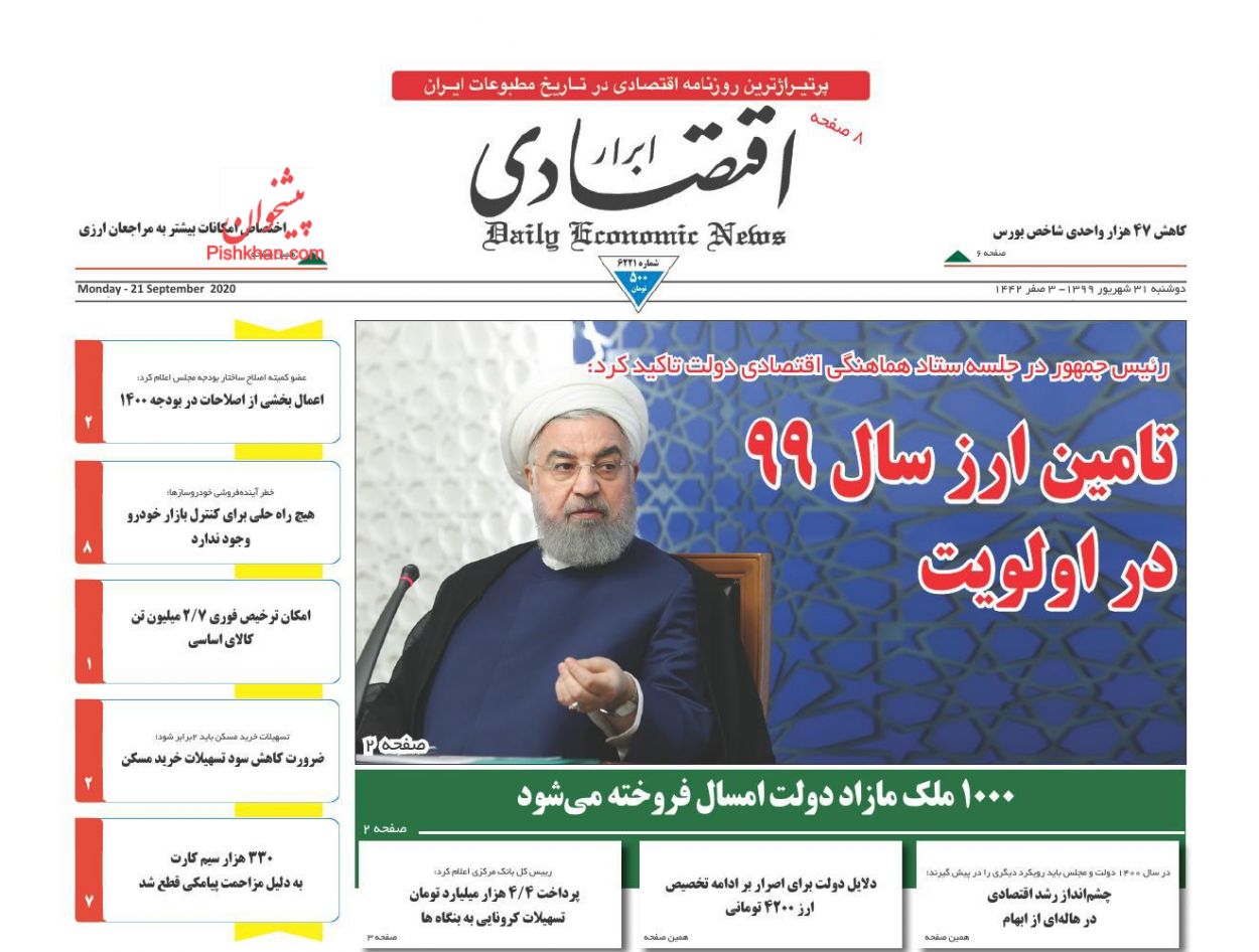 به گزارش گروه اقتصادی خبرگزاری صدا و سیما؛ صفحه نخست برخی روزنامههای اقتصادی امروز دوشنبه، ۳۱ شهریور ۹۹ به شرح زیر است: