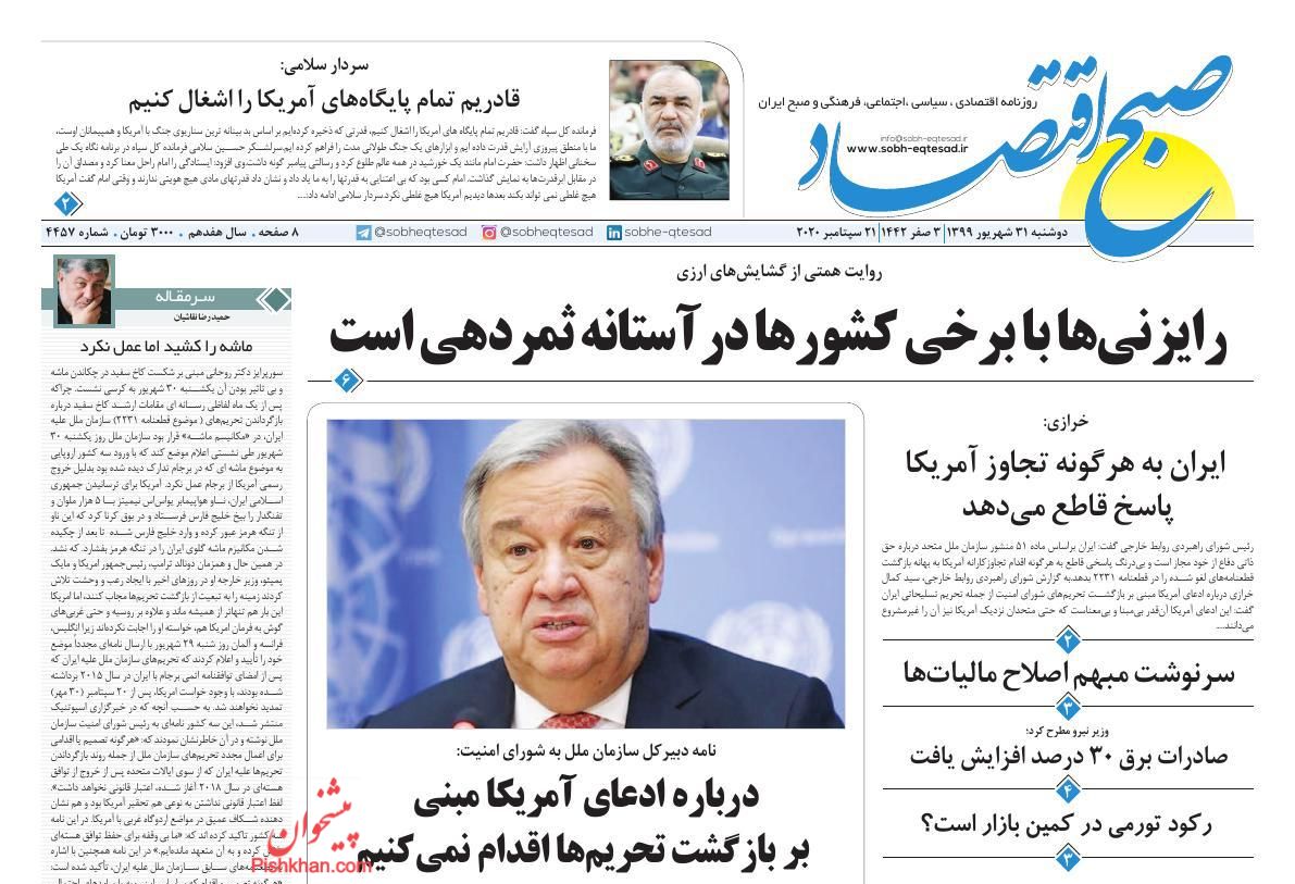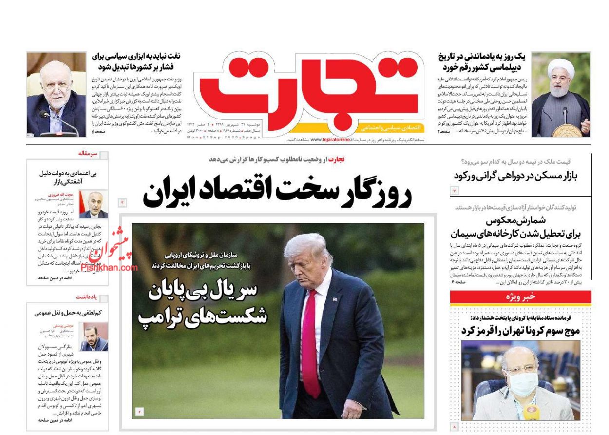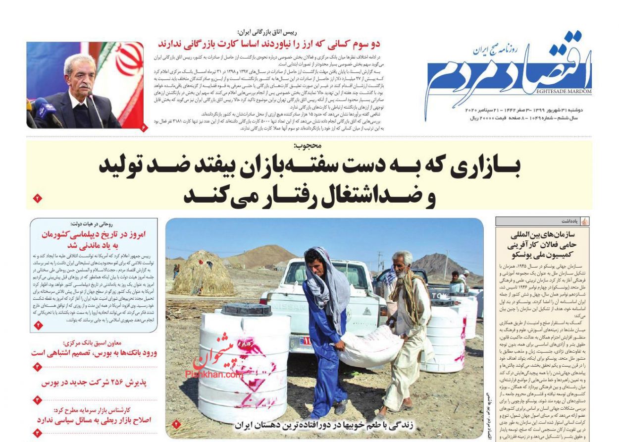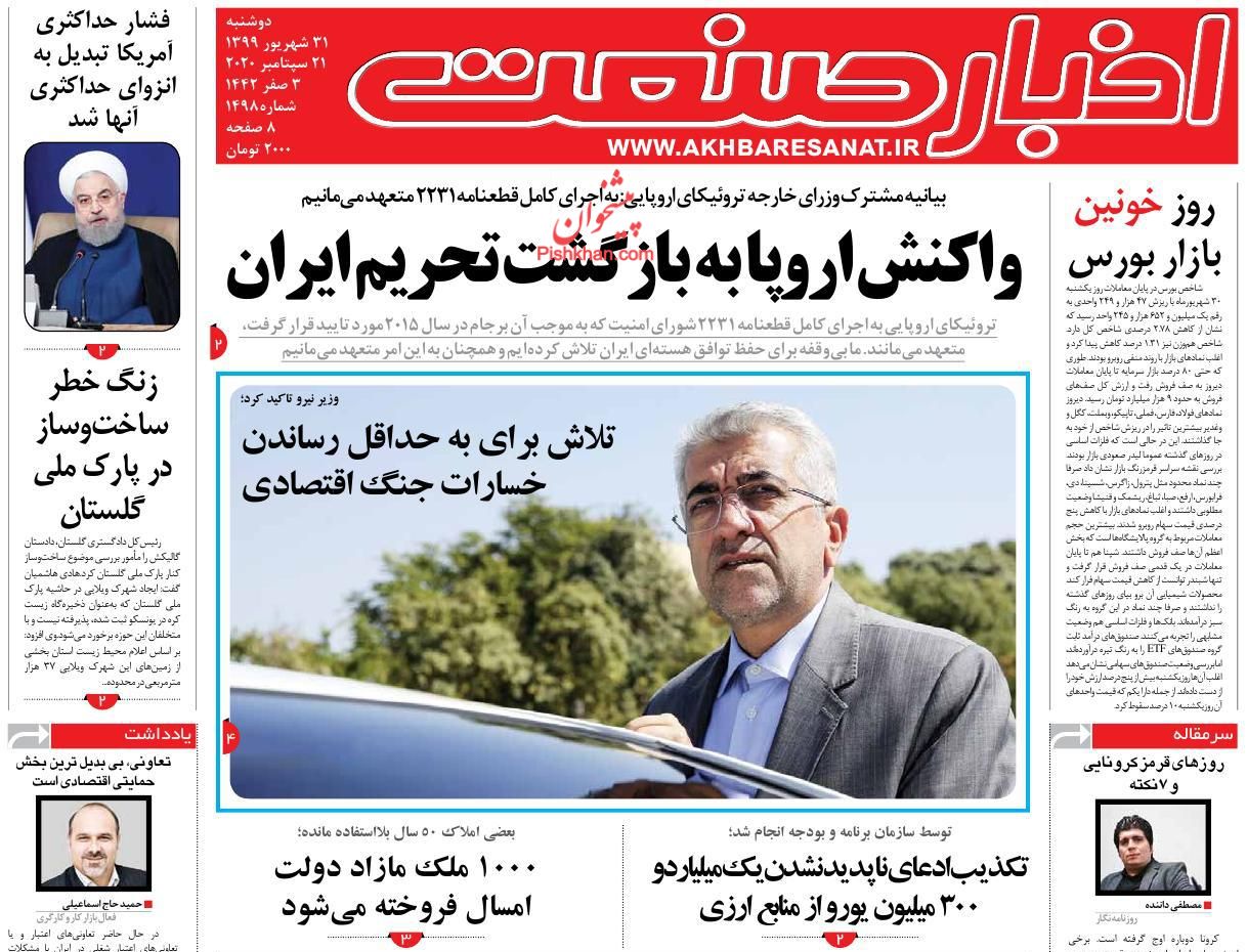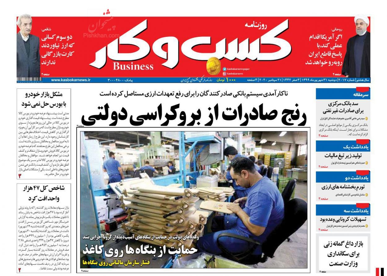 صفحه نخست روزنامههای اقتصادی امروز دوشنبه، ۳۱ شهریور ۹۹ را در خبرگزاری صدا و سیما دنبال کنید.