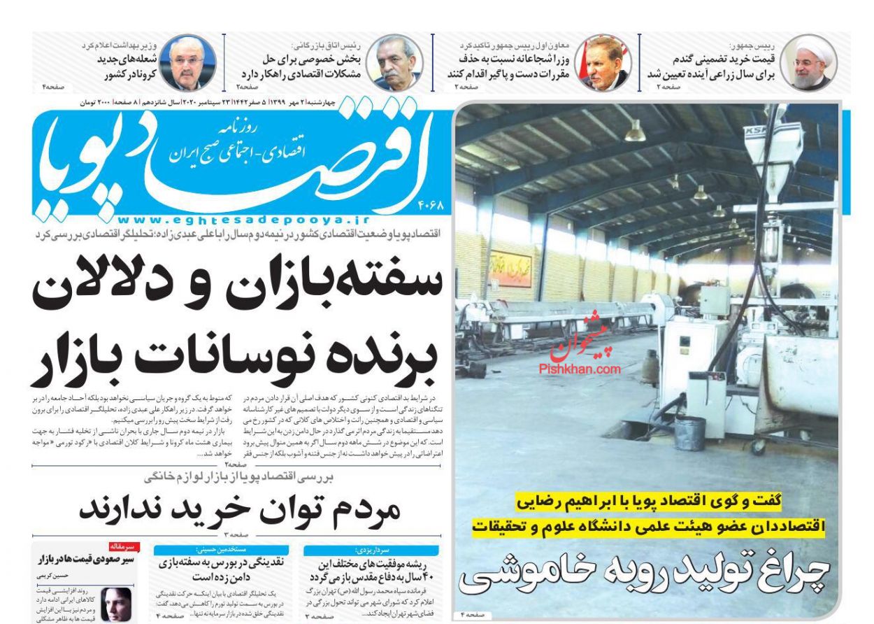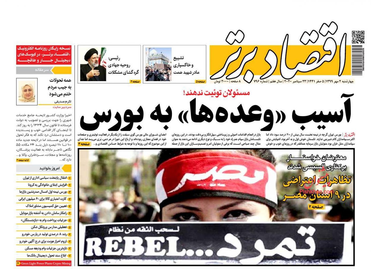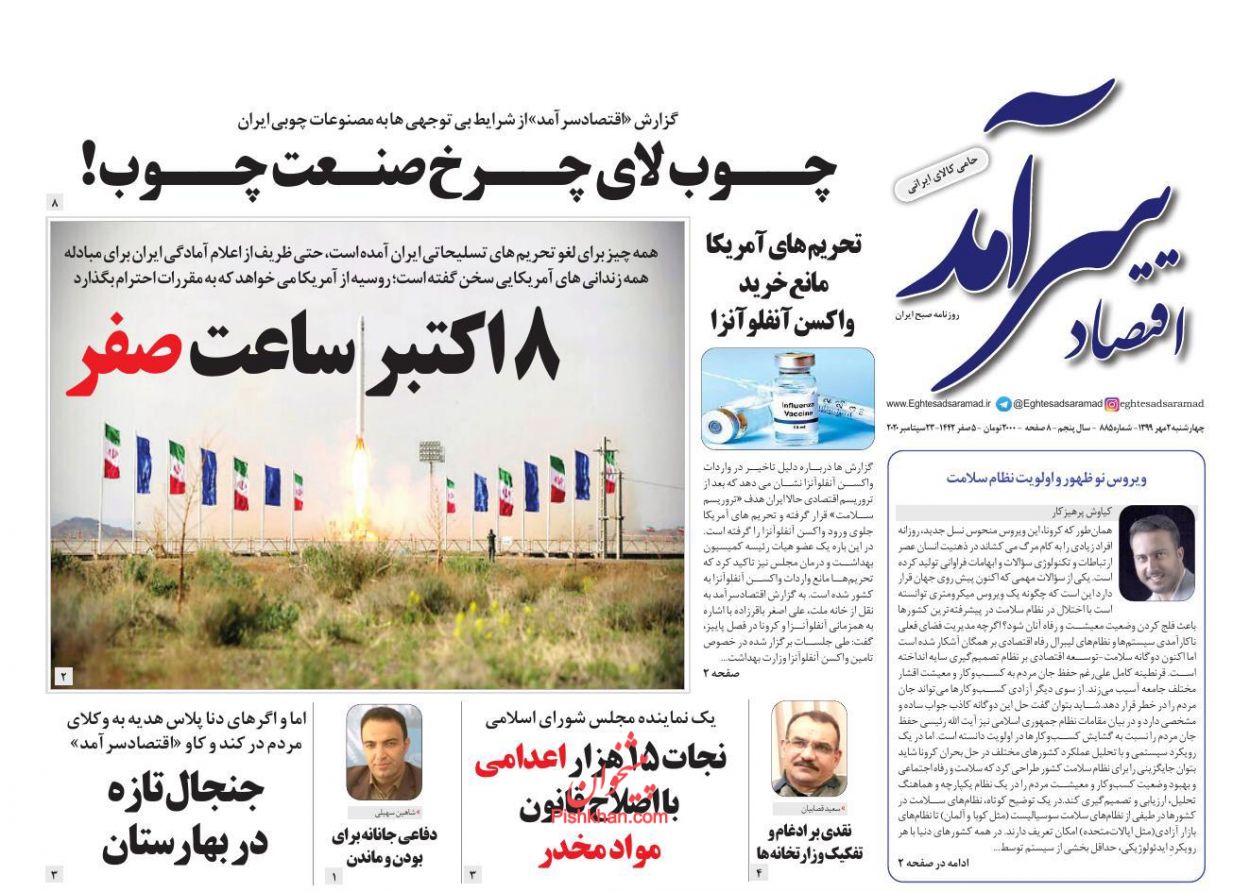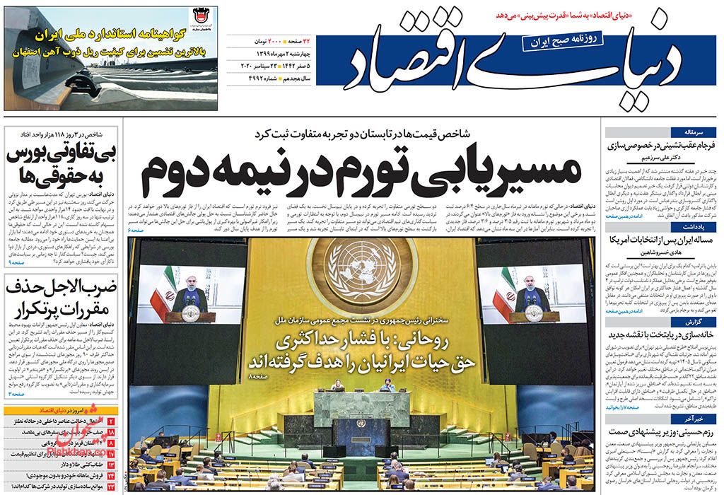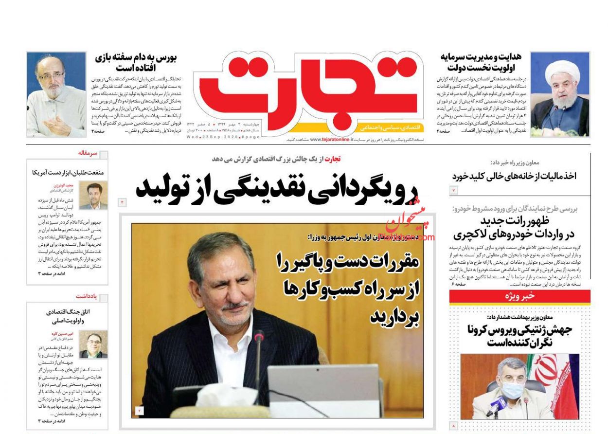 به گزارش گروه اقتصادی خبرگزاری صدا و سیما؛ صفحه نخست برخی روزنامههای اقتصادی امروز چهارشنبه، ۲ مهر ۹۹ به شرح زیر است:
