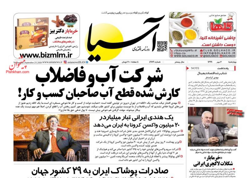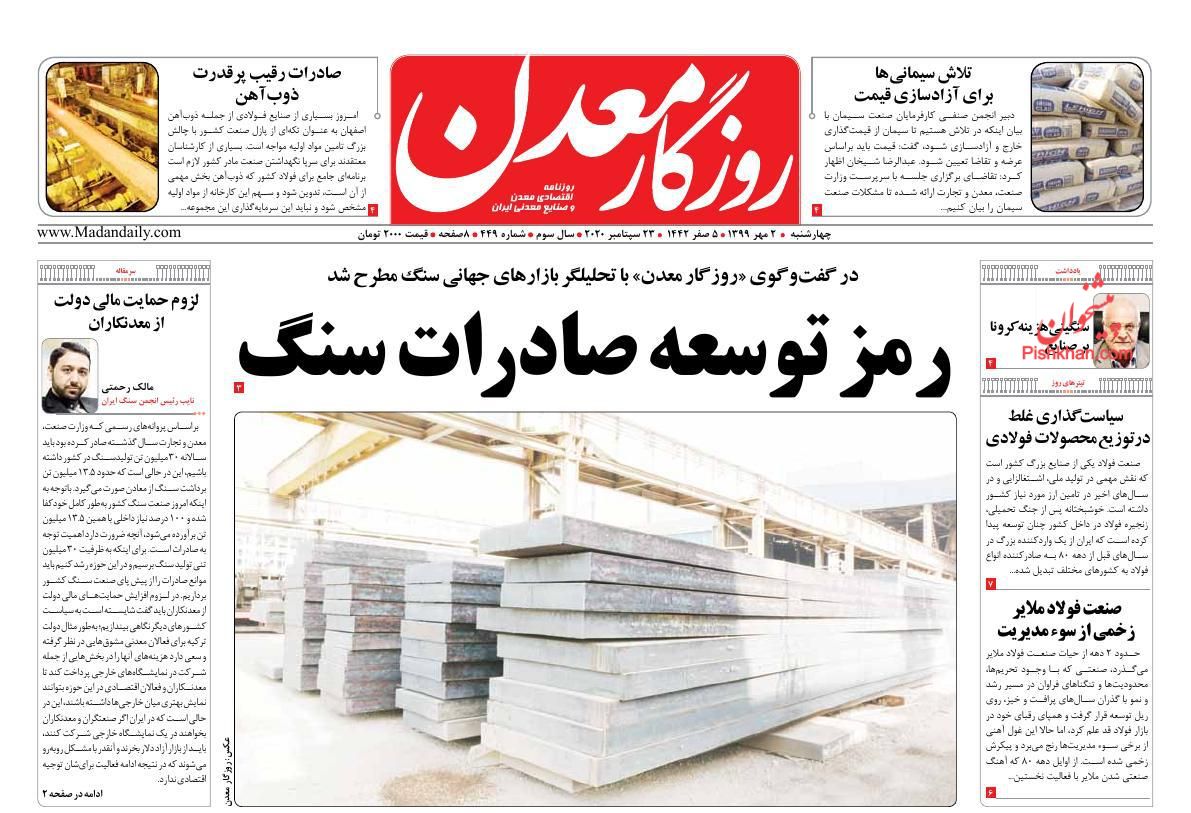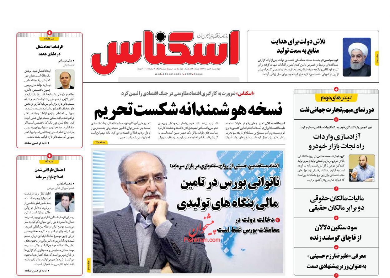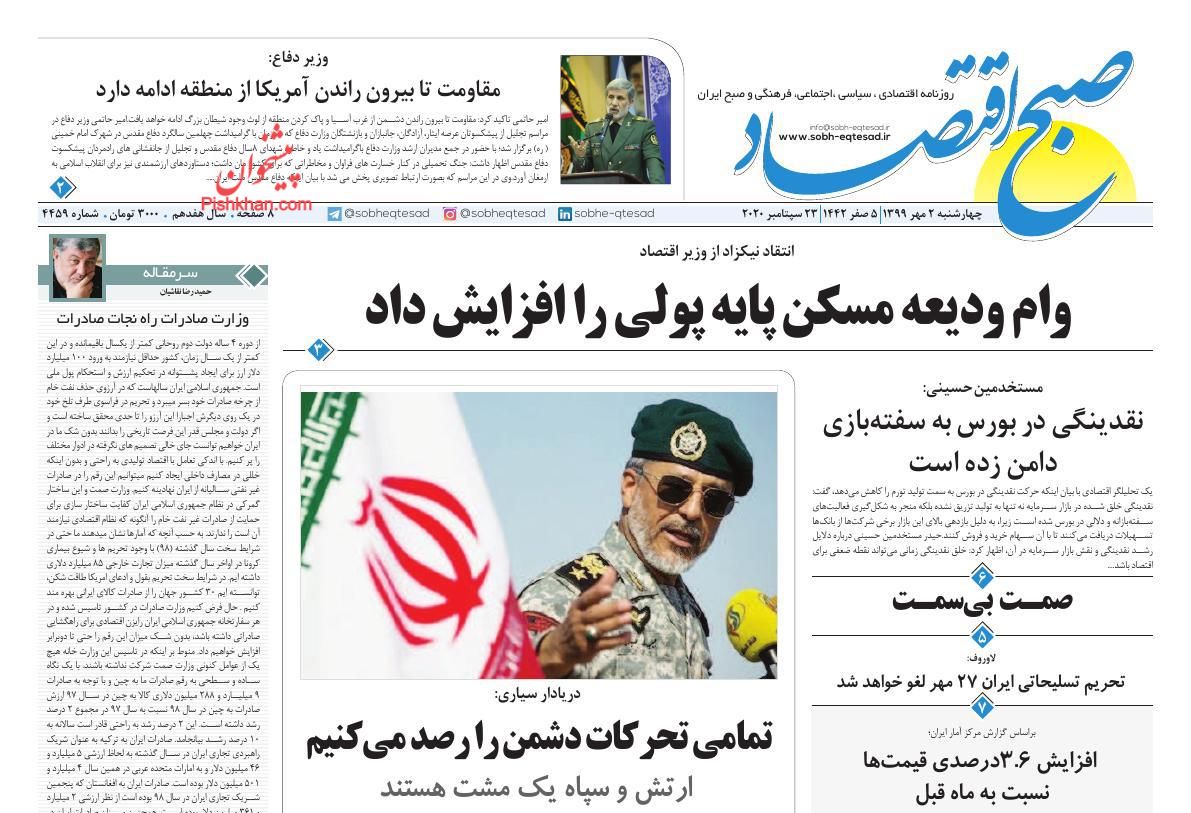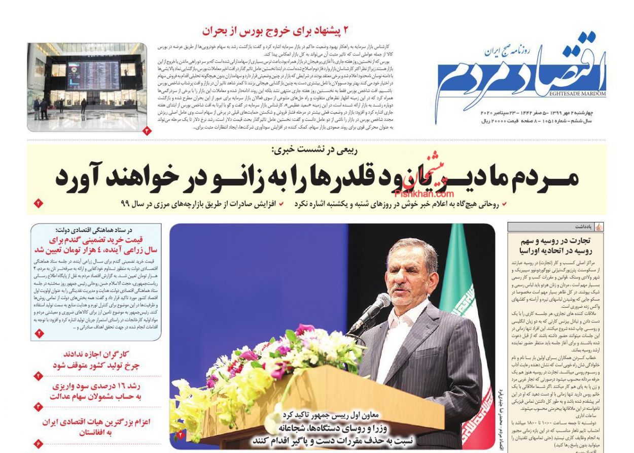 به گزارش گروه اقتصادی خبرگزاری صدا و سیما؛ صفحه نخست برخی روزنامههای اقتصادی امروز چهارشنبه، ۲ مهر ۹۹ به شرح زیر است: