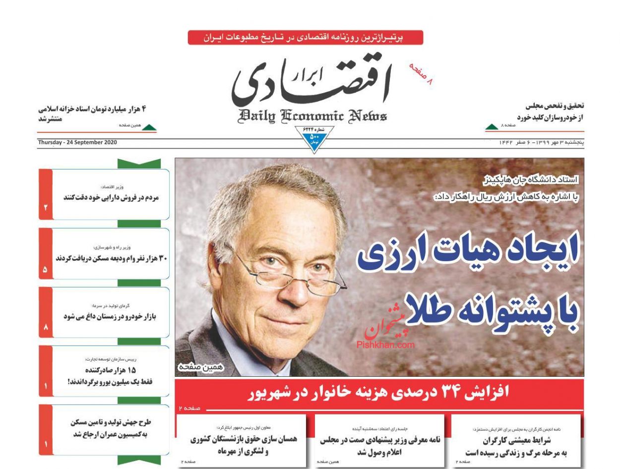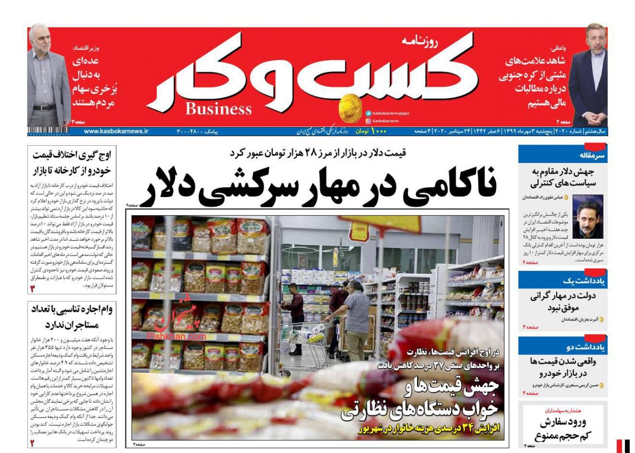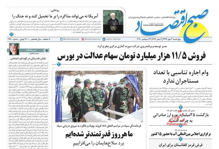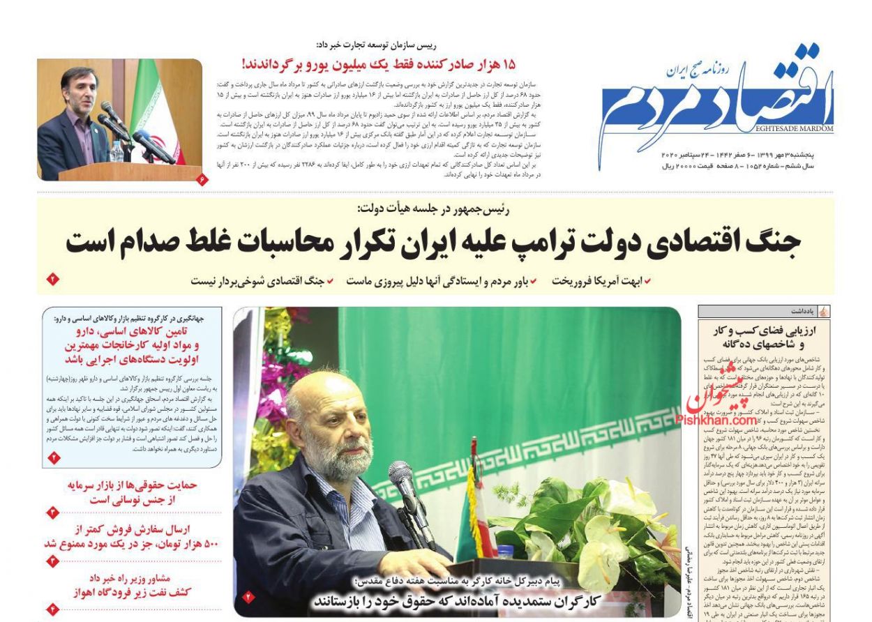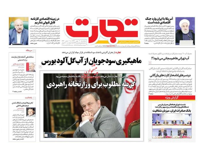 به گزارش گروه اقتصادی خبرگزاری صدا و سیما؛ صفحه نخست برخی روزنامههای اقتصادی امروز پنج شنبه، ۳ مهر ۹۹ به شرح زیر است: