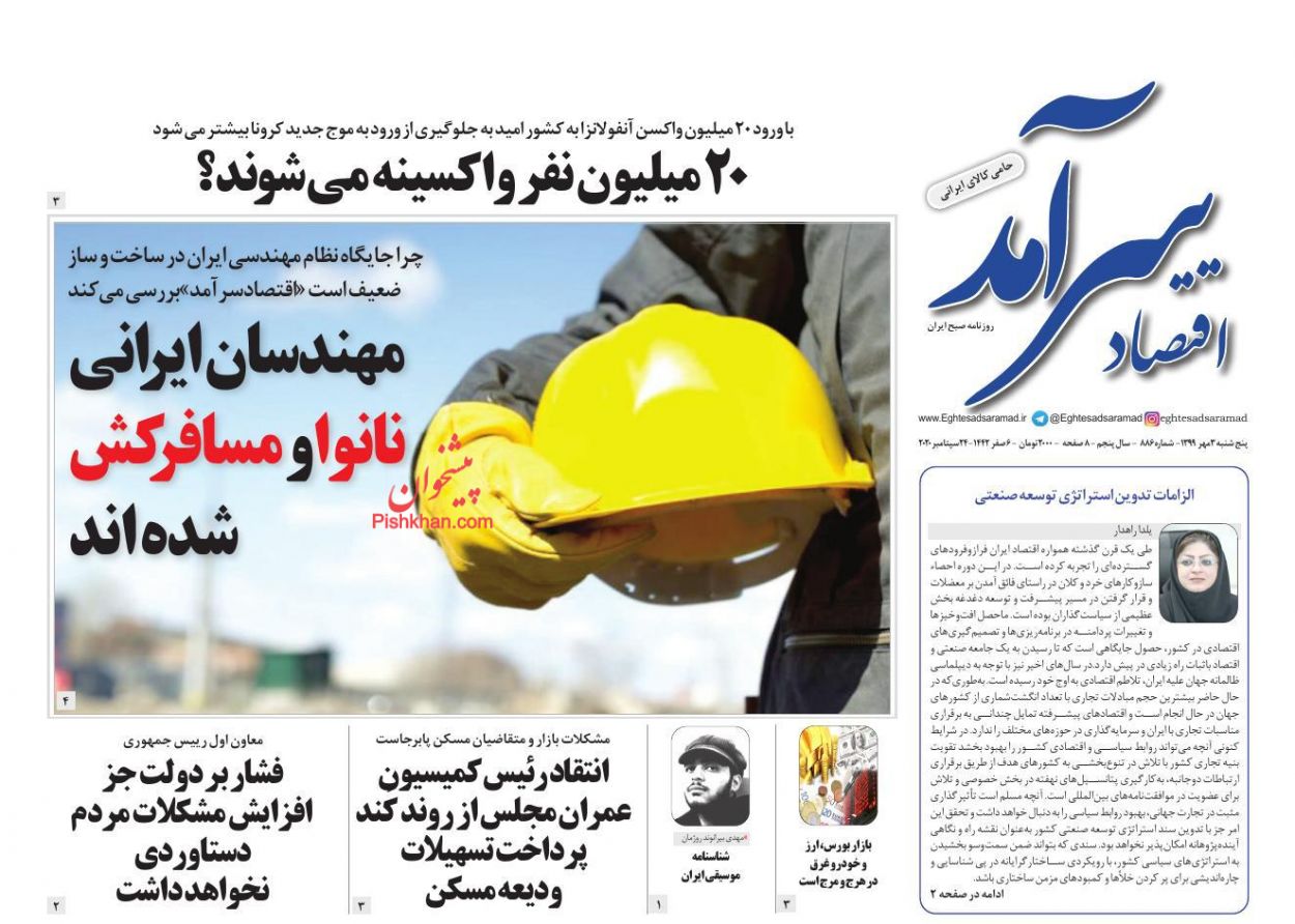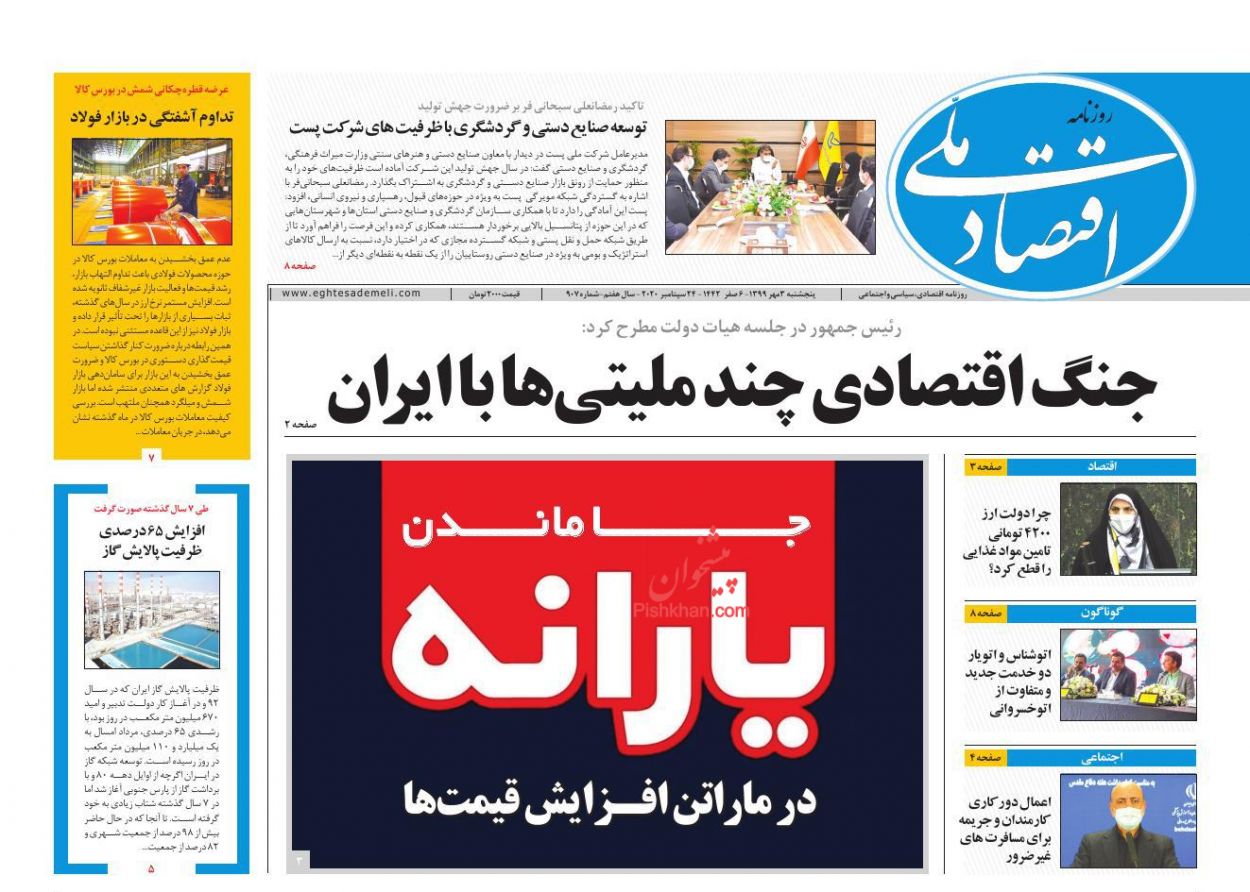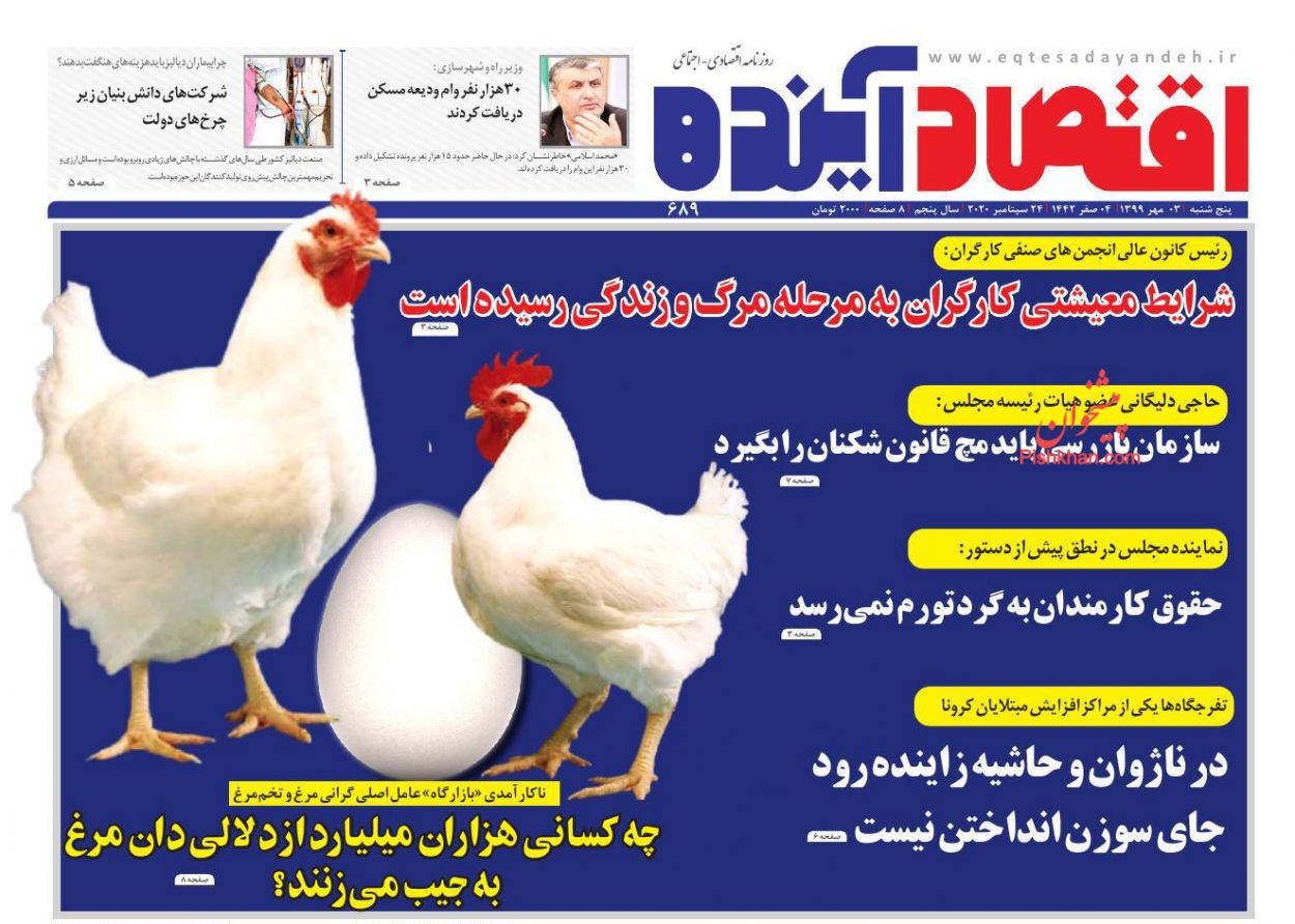 به گزارش گروه اقتصادی خبرگزاری صدا و سیما؛ صفحه نخست برخی روزنامههای اقتصادی امروز پنج شنبه، ۳ مهر ۹۹ به شرح زیر است: