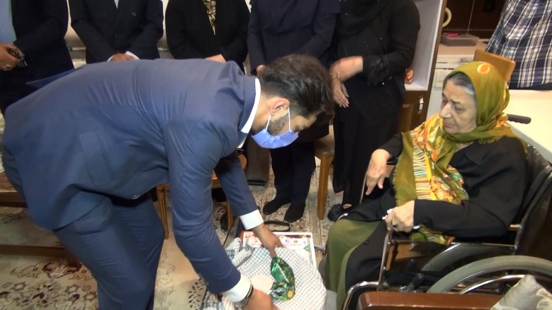 مدال افتخار بر گردن مادر شهید یزدانی