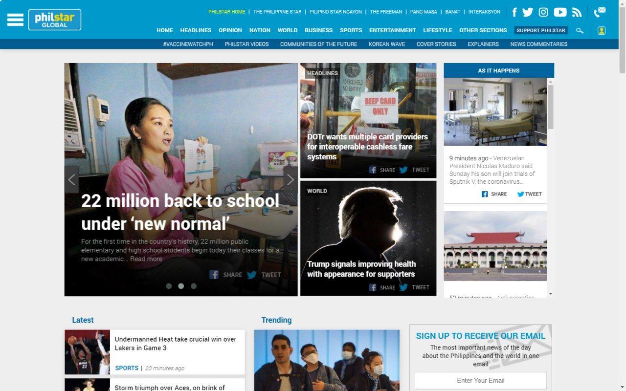 - برای نخسین بار در تاریخ فیلیپین ۲۲ میلیون دانش آموز دبستانی و دبیرستانی بدون حضور فیزیکی در مدرسه از طریق تلویزیون و اینترنت درس میخوانند.