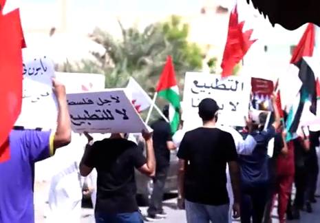 مردم بحرین پرچمهای فلسطین را در مناطق ابوصیبع و الشاخوره به اهتزار درآوردند تا وفاداری خالصانه خود را به آرمان فلسطین نشان دهند. همچنین شرکت کنندگان در تظاهرات گسترده در منطقه سماهیج پرچمهای فلسطین را در دست گرفتند. تظاهرکنندگان در این منطقه، با سر دادن شعارهایی هر نوع عادی سازی روابط با صهیونیستها را رد کردند. همچنان تظاهرات در دیگر مناطق بحرین هم برای اعلام موضع متحد ملت بحرین در مخالفت با عادی سازی روابط برگزار شد.