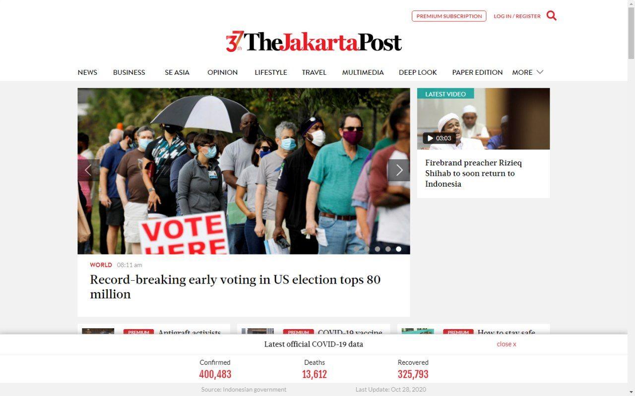 - کمیته مبارزه با کووید اندونزی از ایجاد سامانه‌ای آنلاین برای ثبت لحظه‌ای نقض شیوه نامه‌های بهداشتی در مناطق قرمز این کشور خبر داد.