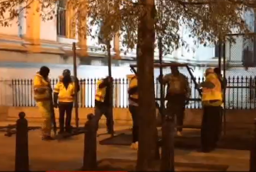 پیرامون ساختمان «اِمپایِر اِستِیت» در نیویورک، با ورقههای چوبی پوشانده شده است. برخی از فروشگاههای زنجیرهای نیز به همین شکل، درها و پنجرههای خود را پوشانده اند.