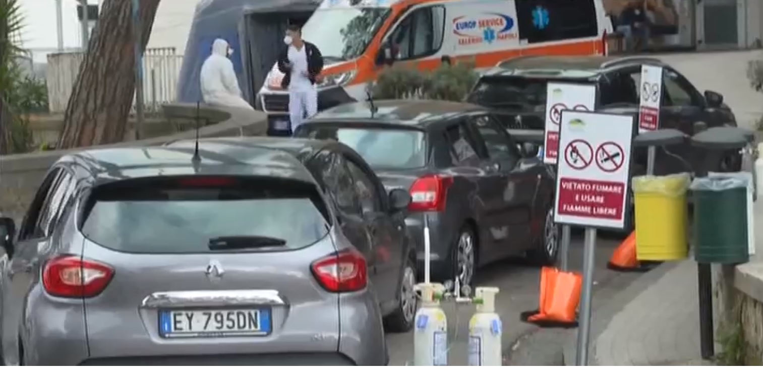 گزارشگر این شبکه گفت: خودرو‌هایی که در ناپل در برابر بیمارستان صف کشیده اند، افراد مظنون به ویروس کووید-۱۹ هستند. اما به دلیل نبود جای کافی در بیمارستان، در داخل خودرو‌ها به آن‌ها اکسیژن وصل شده است. حتی آمبولانس‌ها نیز برای ورود به داخل بیمارستان، باید منتظر بمانند.