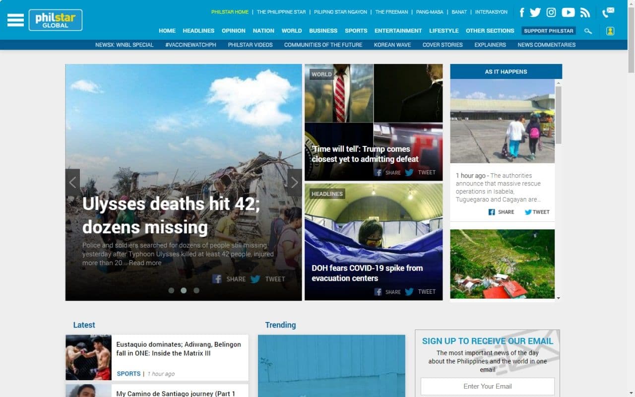 - ده‌ها نفر در طوفان، بارندگی شدید و وقوع سیل در مانیل پایتخت فیلیپین مفقود و ۴۱ نفر نیز فوت شدند.