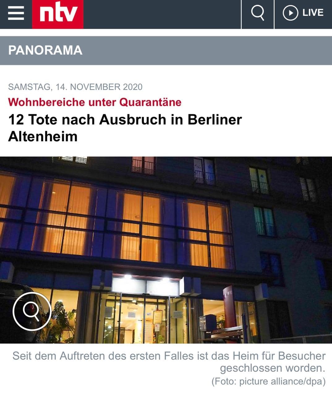 ۱۲ فوتی براثر سرایت کرونا در خانه سالمندان در آلمان ۱۲ فوتی براثر سرایت کرونا در خانه سالمندان در آلمان
