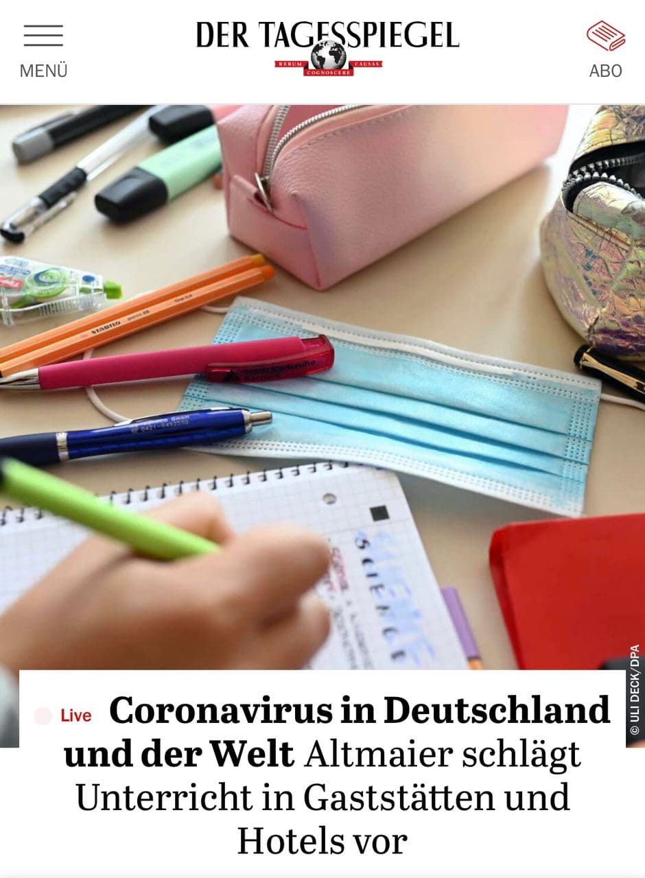 وزیر اقتصاد آلمان پیشنهاد کرد برای حفظ فاصله میان دانش آموزان، کلاسهای درس در مکانهایی مانند رستورانها، هتلها و مراکز فرهنگی برگزار شود.