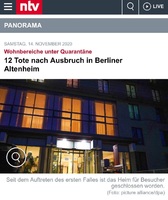 خبرگزاری صدا و سیما از برلين، سرایت کرونا در یک خانه سالمندان در پایتخت آلمان باعث جان باختن ۱۲ نفر شد.