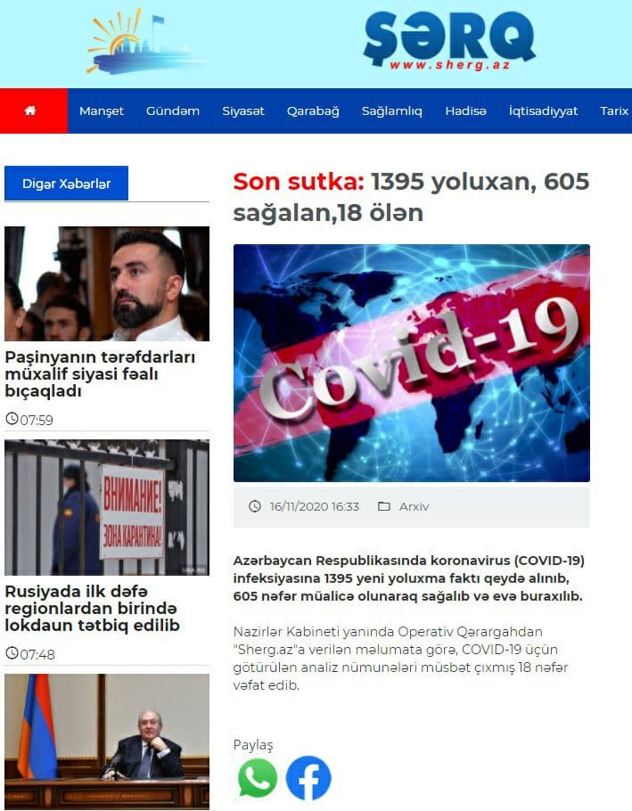 - رئیس بیماری‌های ویروسی جمهوری آذربایجان: در کشور به نقطه اوج کرونا می‌رسیم.