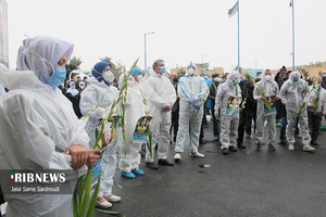 پیکر مطهر شهید دکتر عبدالرسول نائبی پزشک مدافع سلامت امروز پنج شنبه ۶ آذر ماه، با حضور مسئولان بهداشت و درمان استان، پزشکان و پرستاران و همکاران وی، در محوطه بیمارستان عالی نسب تبریز تشییع شد
