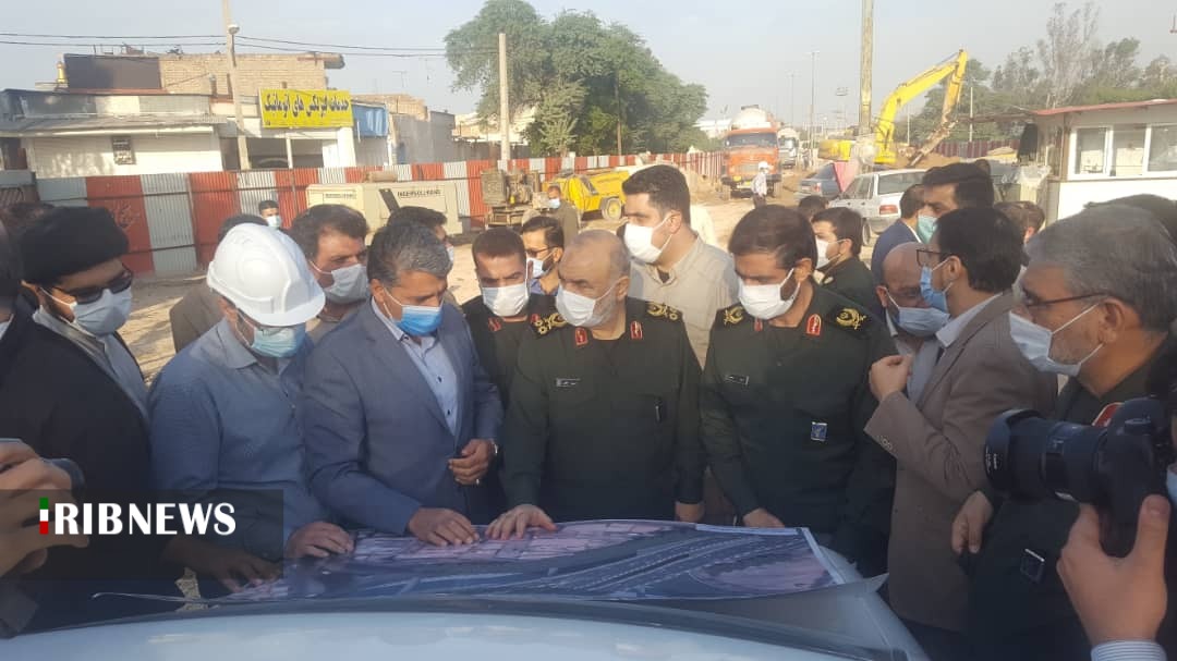 فرمانده کل سپاه پاسداران انقلاب اسلامی سپس در سفر به اهواز از طرح های اجرایی قرارگاه سازندگی خاتم الانبیاء و سپاه پاسداران انقلاب اسلامی در این کلانشهر از جمله طرح محرومیت زدایی از منطقه کم برخوردار منبع آب و طرح ساخت تقاطع غیر همسطح میدان دانشگاه اهواز دیدن کرد.