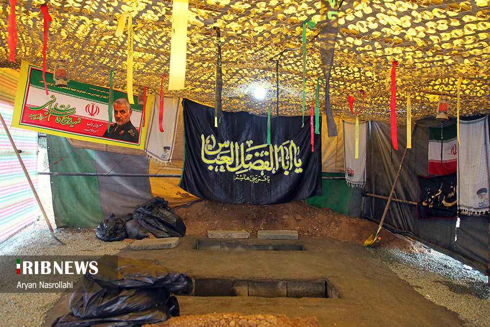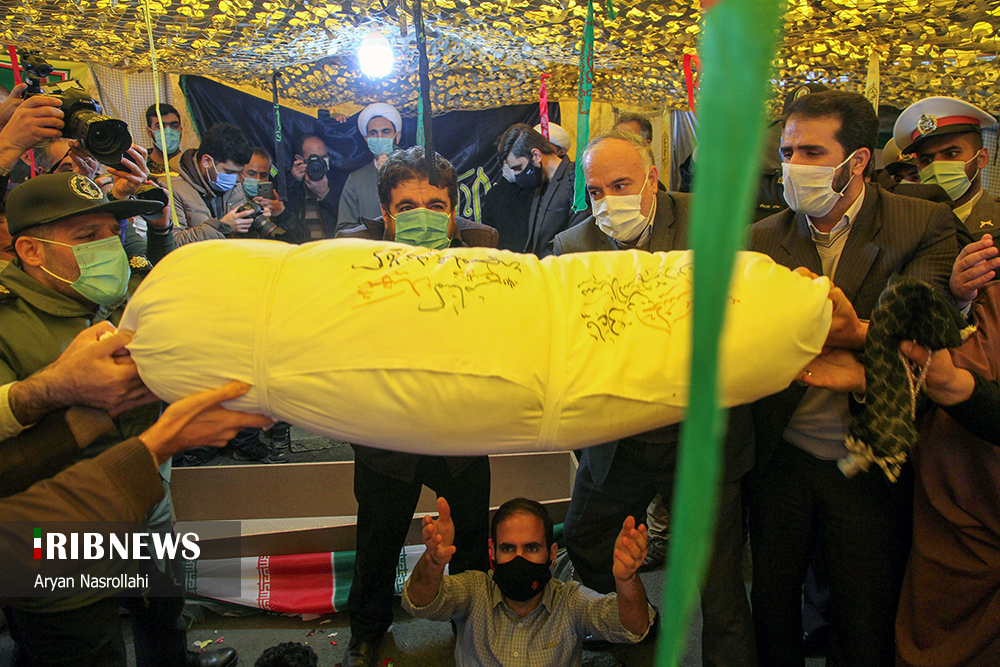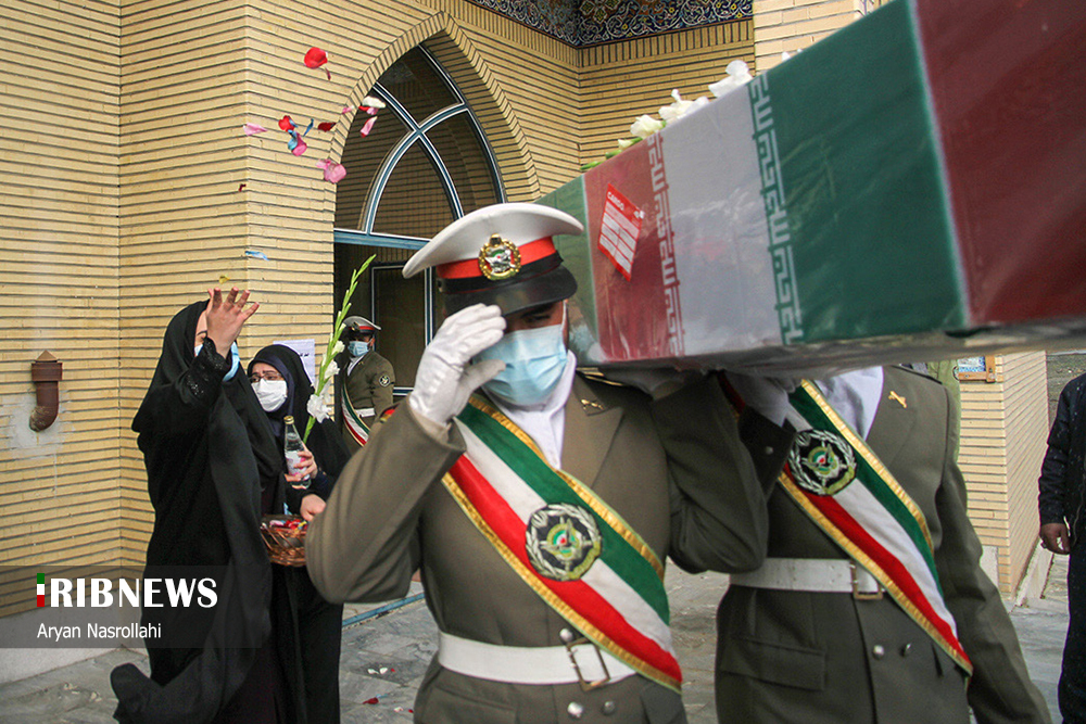 گروه عکس خبرگزاری صدا و سیما: پیکر مطهر ۲ شهید گمنام دوران دفاع مقدس که در عملیات کربلای ۵ به درجه رفیع شهادت نایل شده و در تفحصهای اخیر پیکر پاک آنها بعد از سالها پیدا شد، در محوطه دانشگاه فرهنگیان پس از تشییع به خاک سپرده شد.