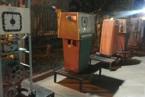 نمونهای از اولین پمپ بنزین در موزه هست که به شکل مخزنی با تلمبهای دستی است.
