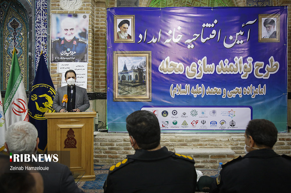 مراسم افتتاح " خانه امداد " آغاز طرح توانمند سازی محلات تهران، با حضور رئیس کمیته امداد امام (ره)، حجت الاسلام ابوترابی امام جمعه تهران و آقا محمدی عضو مجمع تشخیص مصلحت نظام صبح امروز ۲۸ دی ماه در امامزاده یحیی برگزار شد.