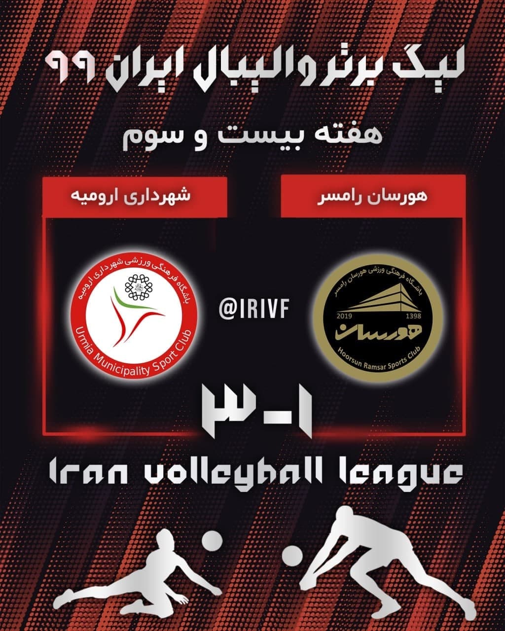 در یکی از حساس‌ترین بازی‌های این هفته در خانه والیبال، هورسان رامسر در روز میزبانی‌اش از شهرداری ارومیه با نتیجه ۳ بر یک مقابل شاگردان پیمان اکبری گوی و میدان را واگذار کرد.