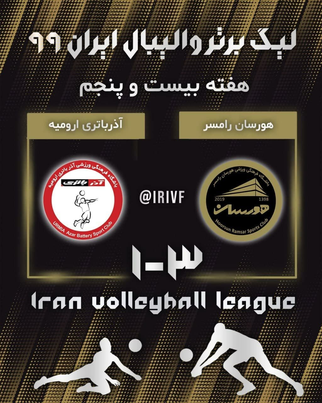 تیم هورسان رامسر در یکی از دیدار‌های حساس از ساعت ۱۴ امروز در خانه والیبال مقابل تیم آذرباتری ارومیه قرار گرفت و موفق شد حریف خود را با نتیجه ۳ بر ۱ شکست دهد.