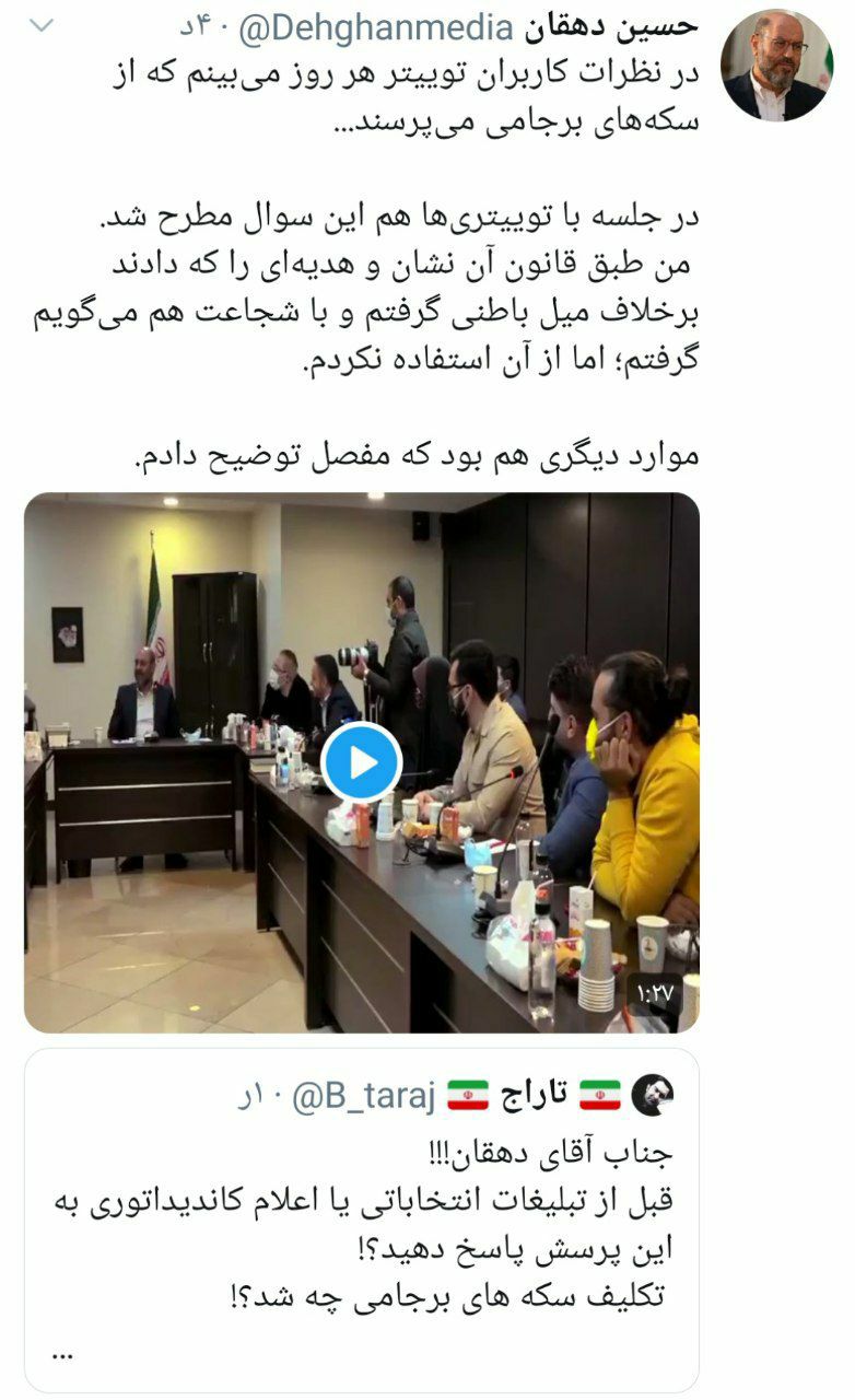 وزیر سابق دفاع و پشتیبانی نیروهای مسلح نوشت: در نظرات کاربران توییتر هر روز میبینم که از سکههای برجامی میپرسند.