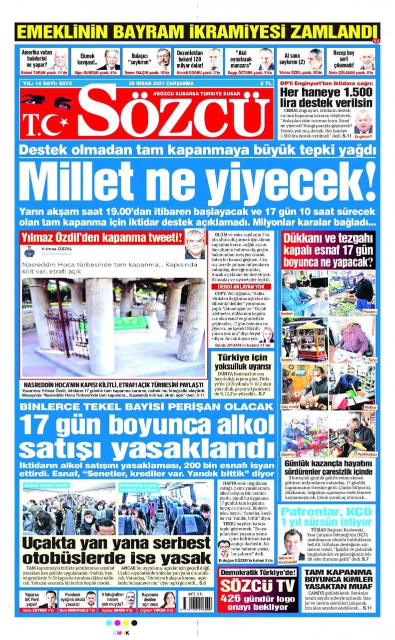 روزنامه سوزجوبابت قرنطینه سراسری به هر خانوار ۱۵۰۰ لیر بدهید