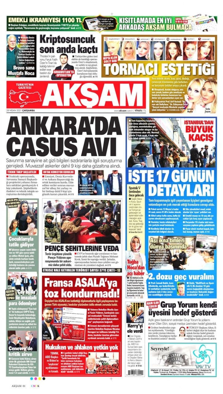 روزنامه آکشامعملیات جاسوس گیری در آنکارا (در صنایع دفاع)